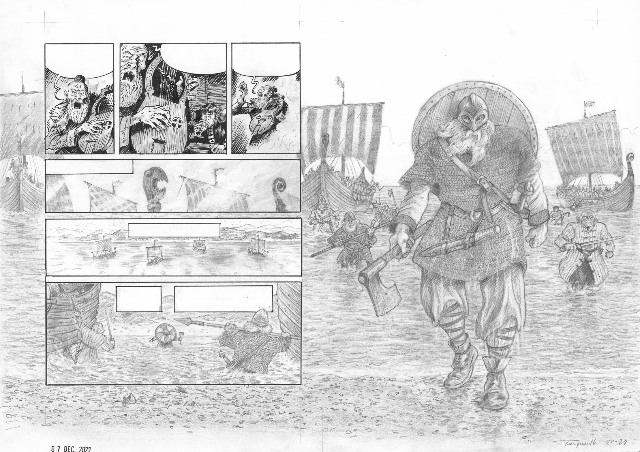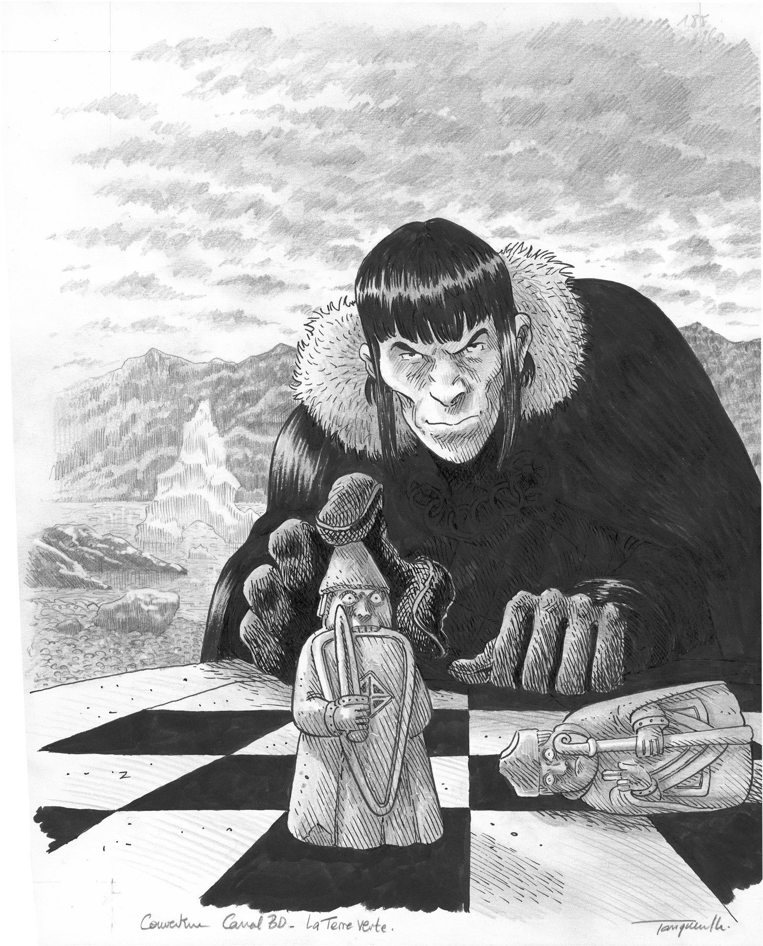 The Vikings have settled in Greenland, where they have prospered for many years; but now their fortunes are in decline and their people on the verge of disappearing for good. It is into this apocalyptic setting that a power-hungry man with a troubled past, a man dealt an unfortunate hand by fate, disembarks La Terre verte, published by Éditions Delcourt, is the product of a first-time collaboration between Alain Ayroles (De cape et de crocsGarulfoLes Indes fourbes) and Hervé Tanquerelle (Les Racontars arctiques, Groenland Vertigo, Le Dernier Atlas). By setting their story in a well-documented period of history, the duo have produced an original fictional tragedy that has echoes of both Shakespeare and Ingmar Bergman. And perhaps we should also read La Terre verte as a contemporary warning regarding our own future? Either way, this is an impressive work of serious fiction, and an engaging and indispensable read in terms both of its story and the manner in which it brings history to life before our very eyes.