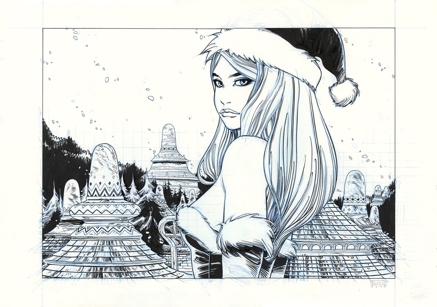 Blue pencil and india ink on paper