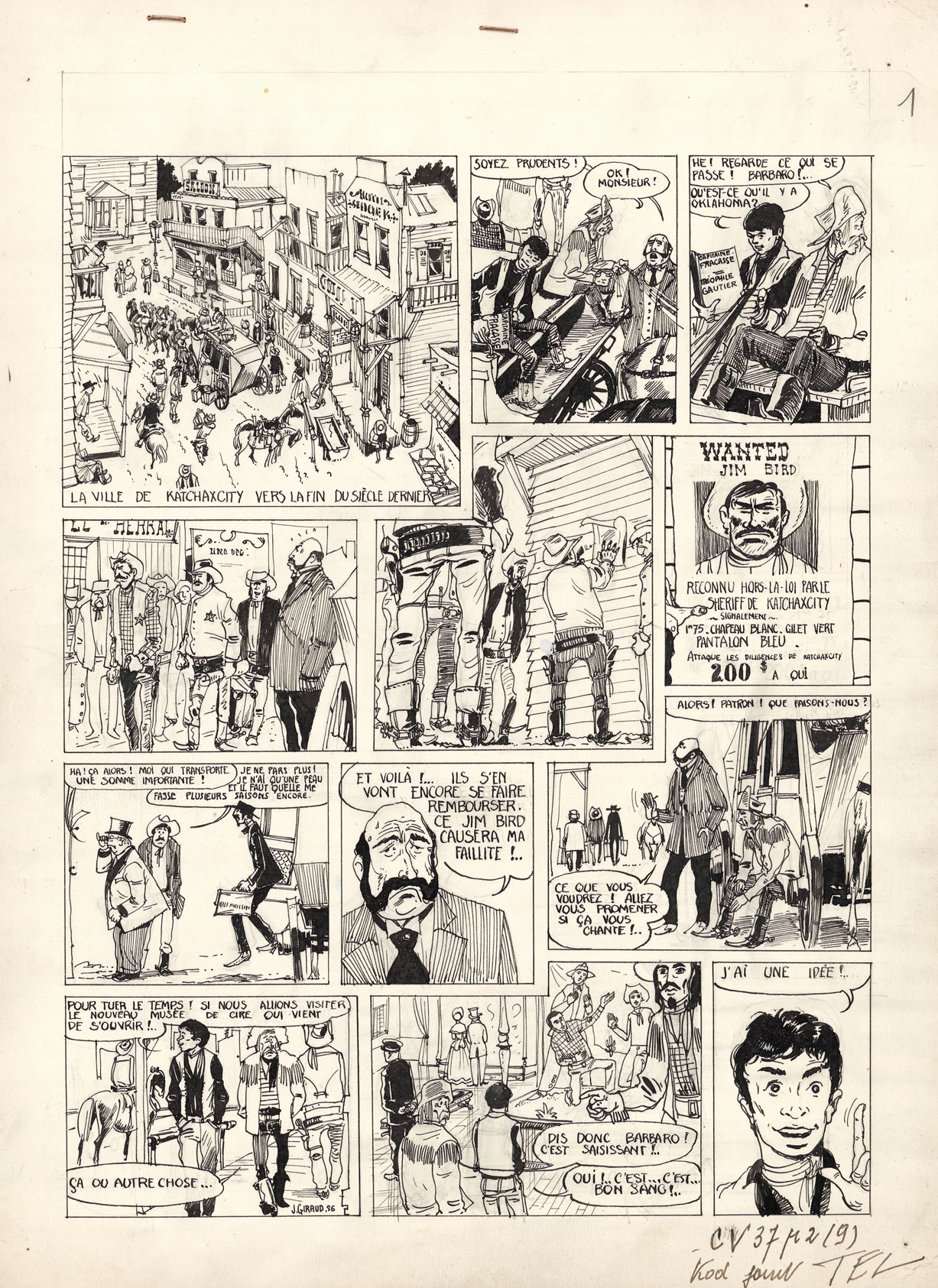 Jean Giraud - L'idée de Barbaro, 1956, Page 1, récit en 4 planches publié dans le n° 37 de Coeurs Vaillants