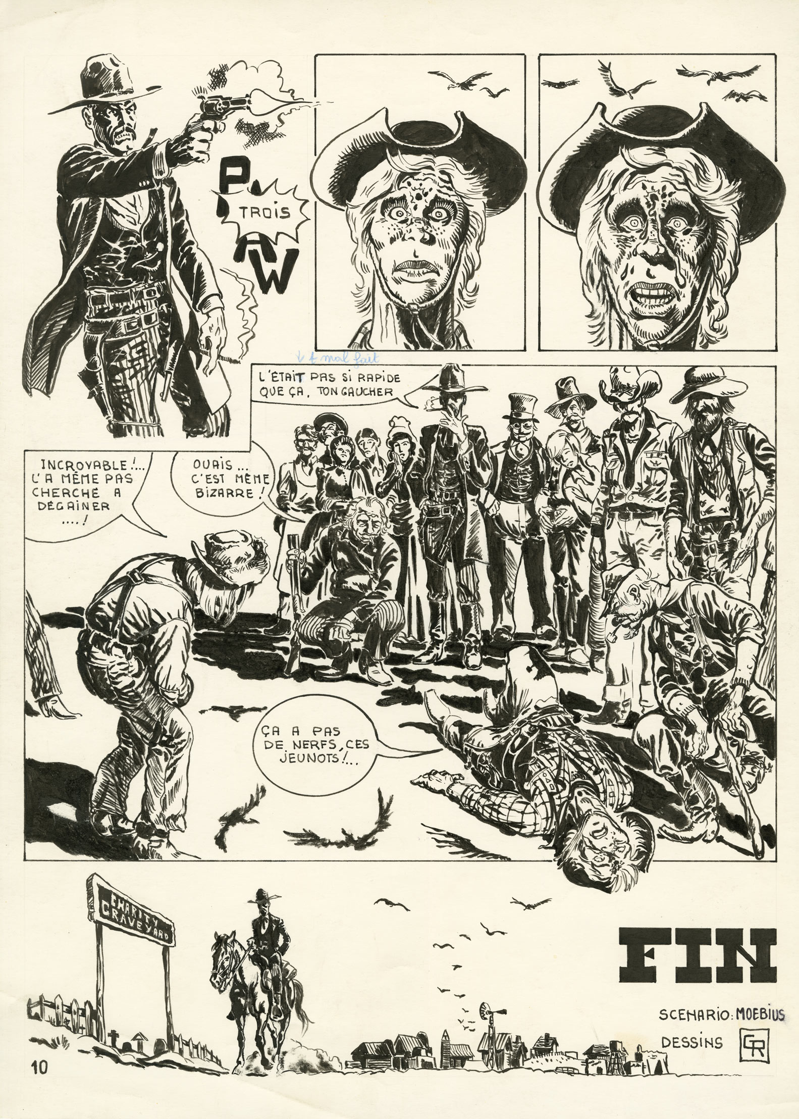 Pages 4 and 7 signed by Ramaïoli, and last page signed by Ramaïoli for the drawing and Moebius for the screenplay.