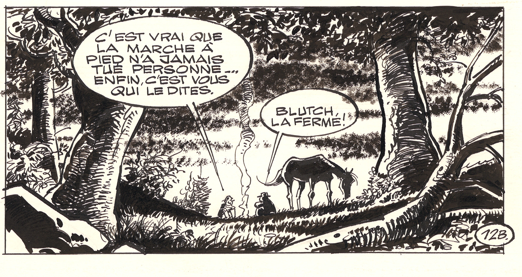 Willy Lambil, Les Tuniques Bleues, Les bleus en cavale, értude de la dernière case de la planche 12 de l'album