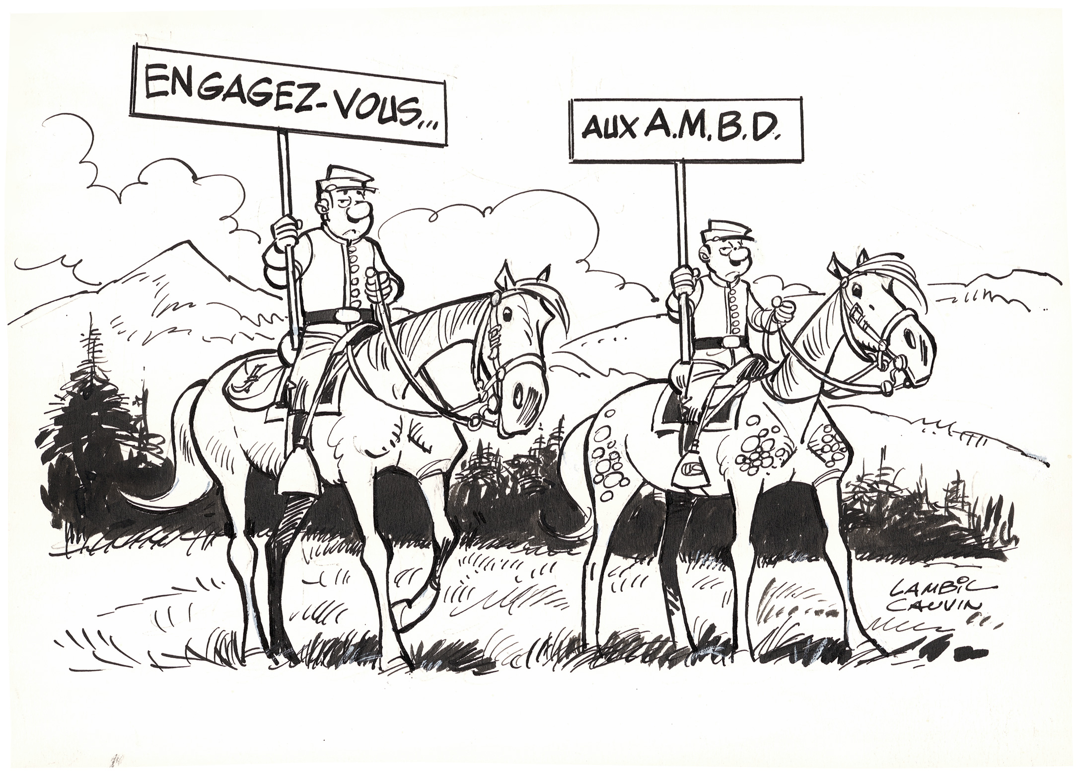 Willy Lambil, Les Tuniques Bleues, 2004, image reproduite en sérigraphie par l'association des Amis du Musée de la bande dessinée d'Angoulême