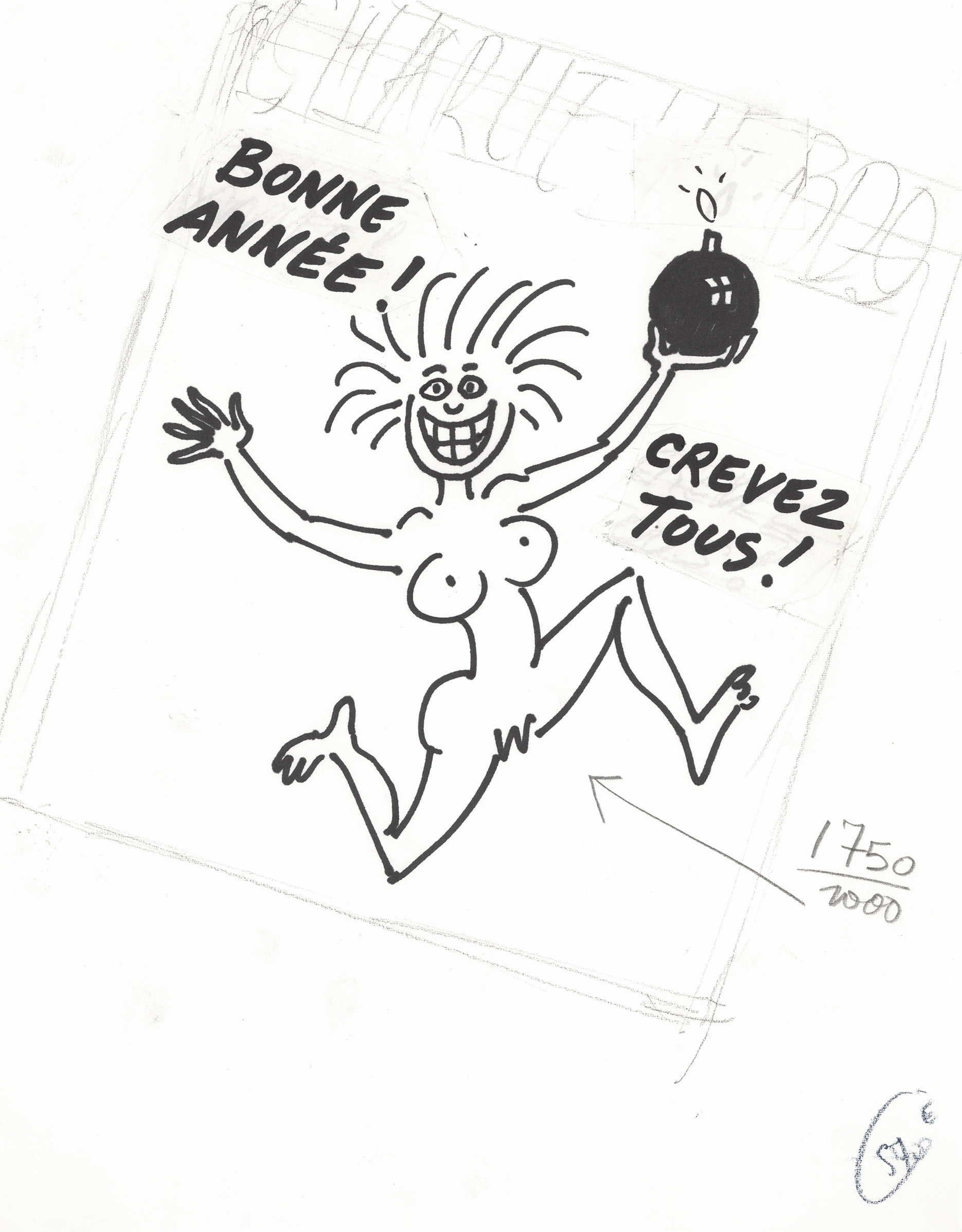 Wolinski - Bonne année ! Crevez tous !, 1977, couverture de Charlie Hebdo n°372, 1977
