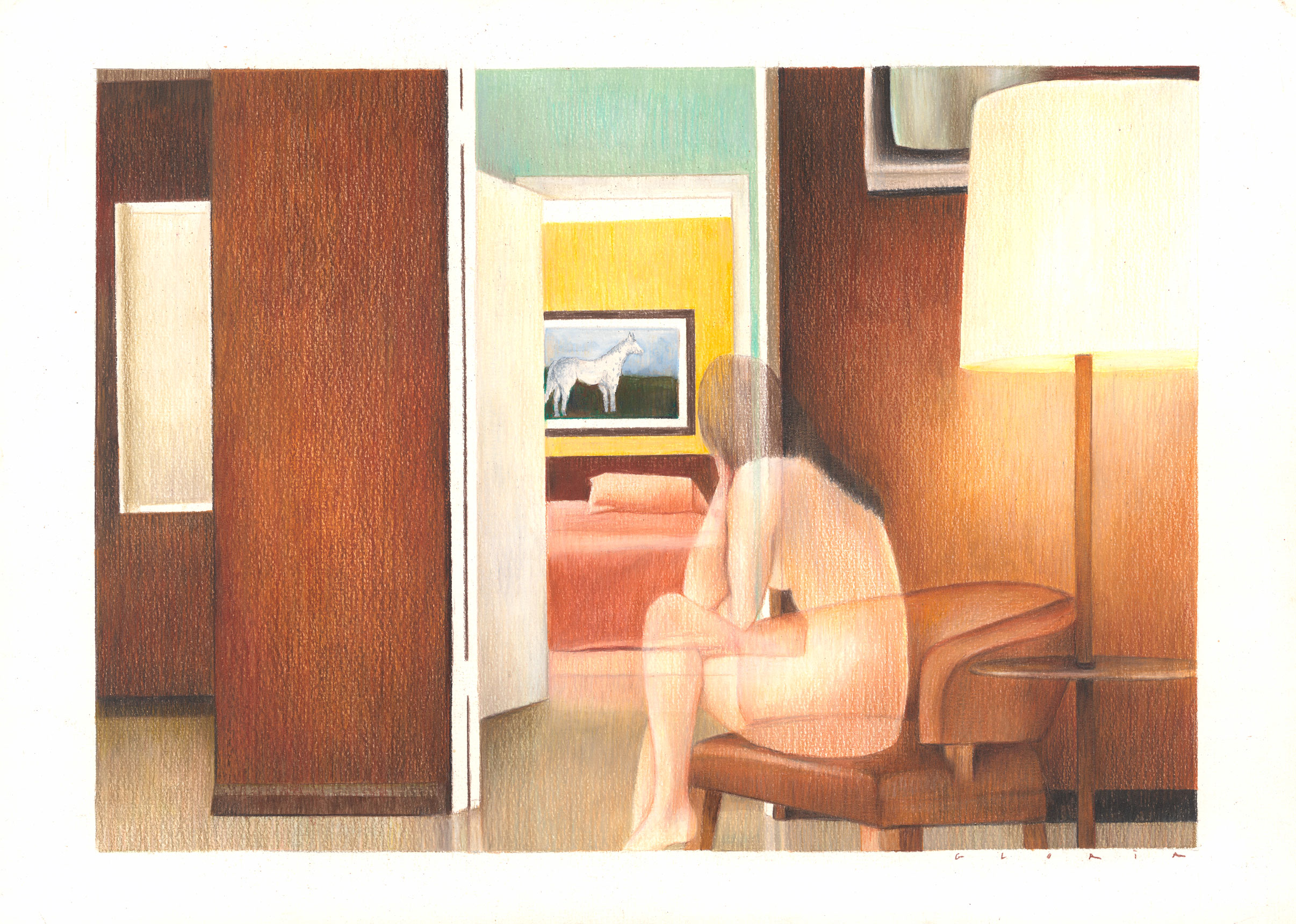 Colored pencils, pastel and watercolor on paper