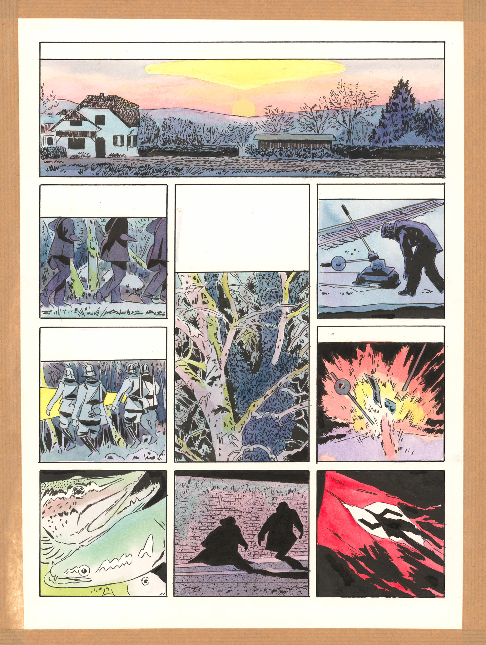India ink and watercolor on paper