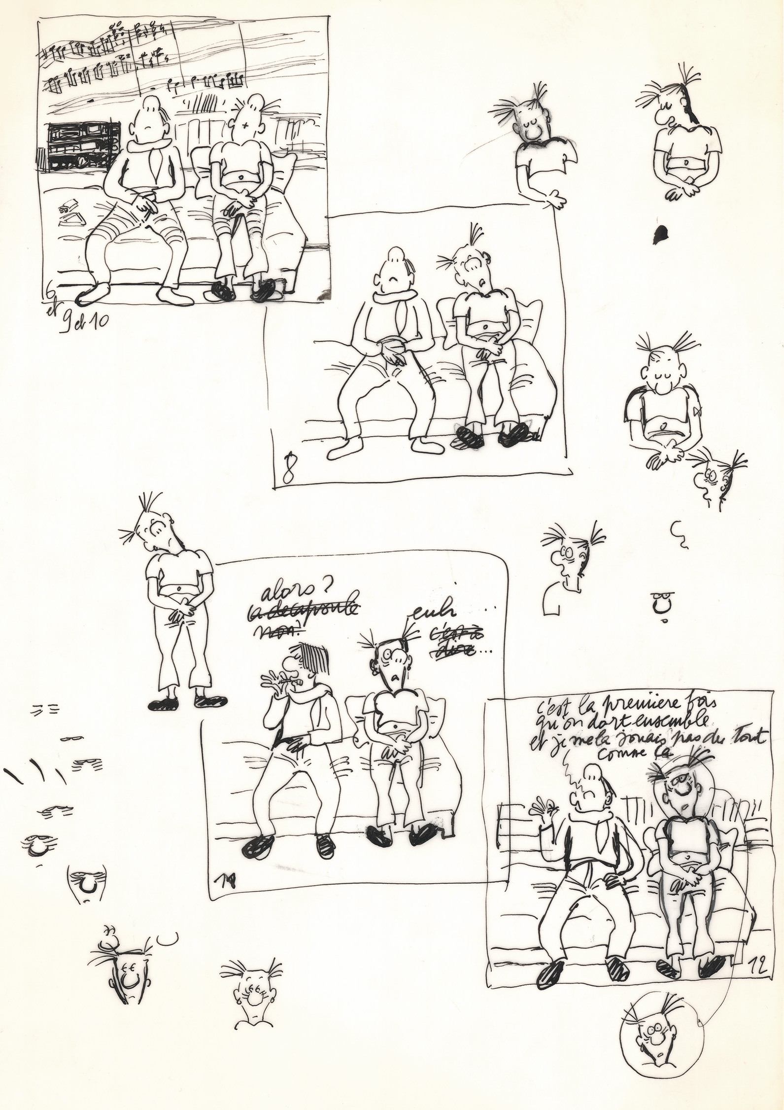 Claire Bretécher - Études, 72, 2025, Cet exemplaire numéroté 72/100 est accompagné d'un dessin original sur calque, utilisé comme étude préparatoire pour Agrippine, Les combats d'Agrippine - Tome 3, "Harmonie".