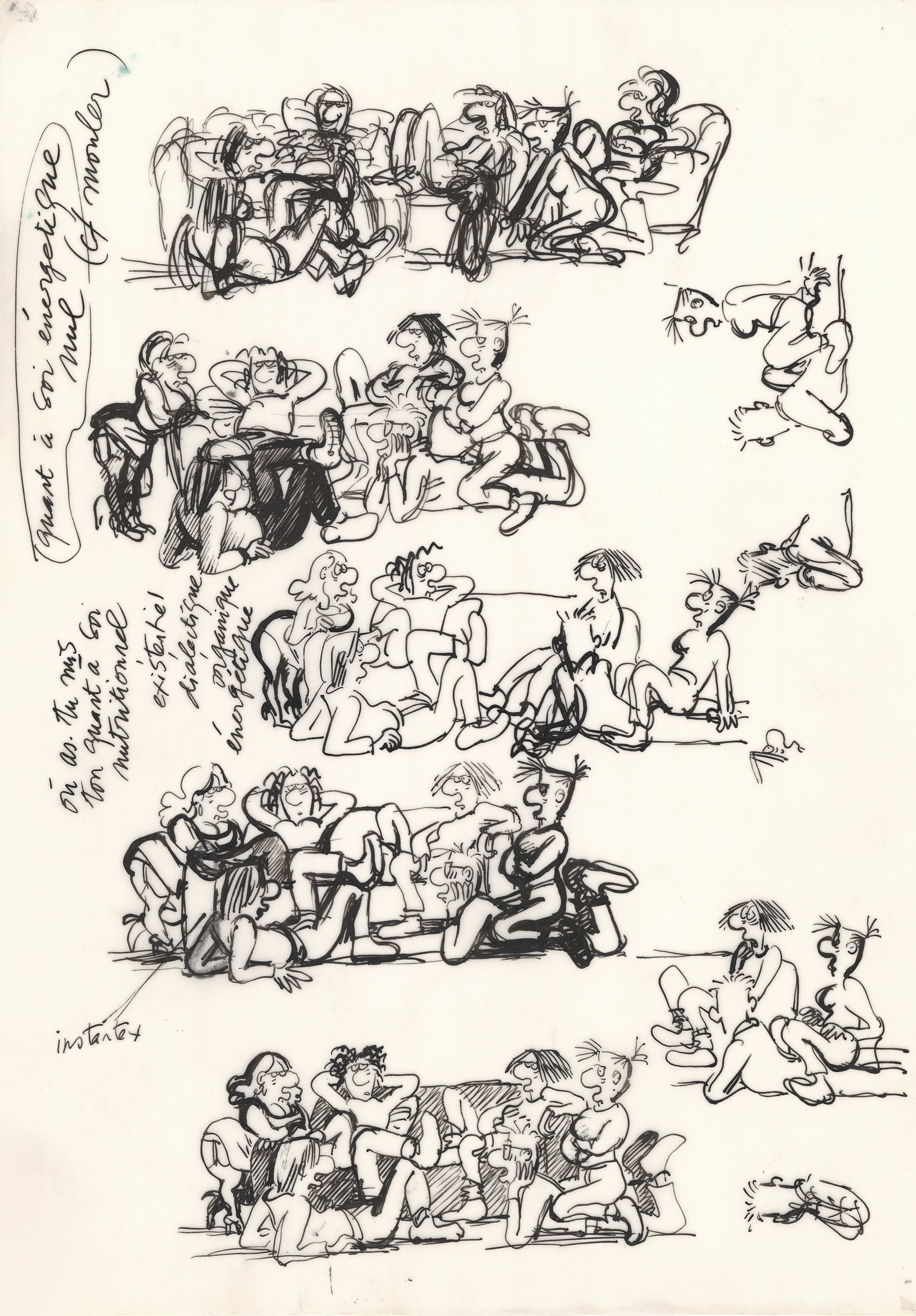 Claire Bretécher - Études, 86, 2025, Cet exemplaire numéroté 86/100 est accompagné d'un dessin original sur calque, utilisé comme étude préparatoire pour Agrippine, Agrippine et les inclus - Tome 4, "Horizons".
