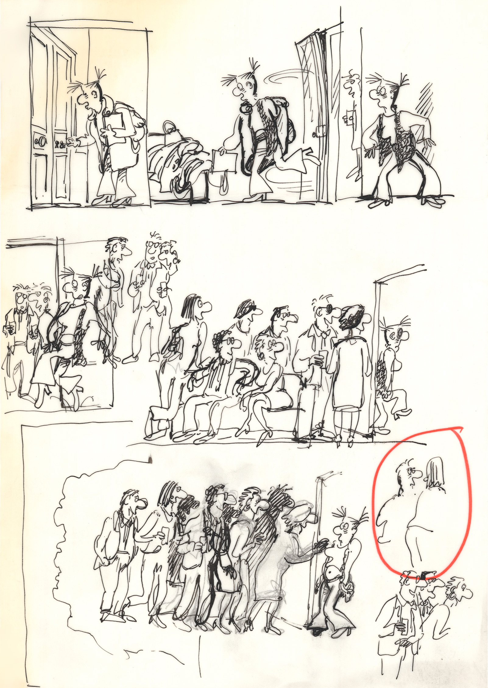 Claire Bretécher - Études, 87, 2025, Cet exemplaire numéroté 87/100 est accompagné d'un dessin original sur calque, utilisé comme étude préparatoire pour Agrippine, Les combats d'Agrippine - Tome 3, "En scène".