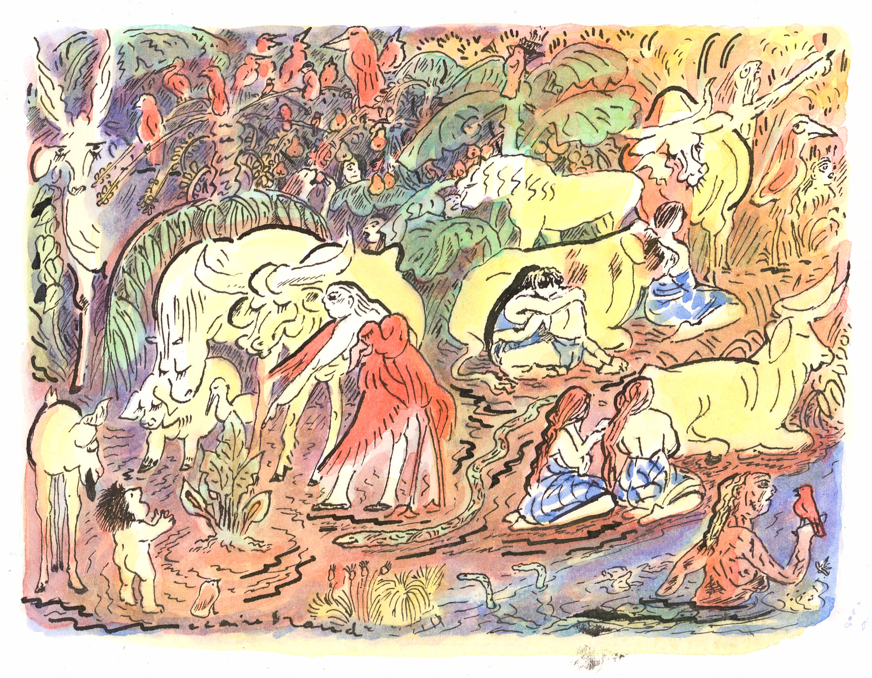 Ink and watercolor on paper