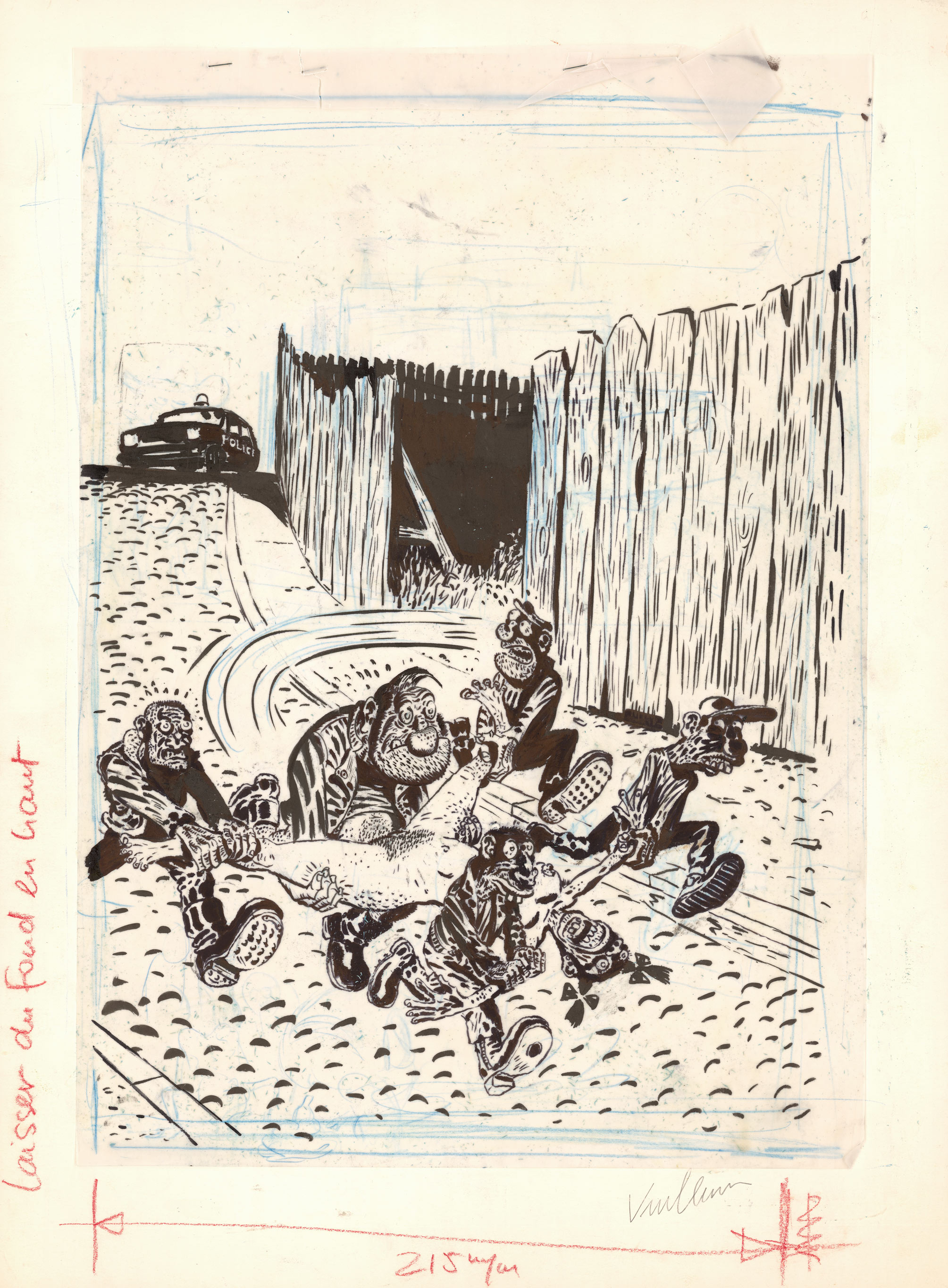 Page à l'encre de Chine accompagnée de sa mise en couleurs (27 x 32,2 cm)