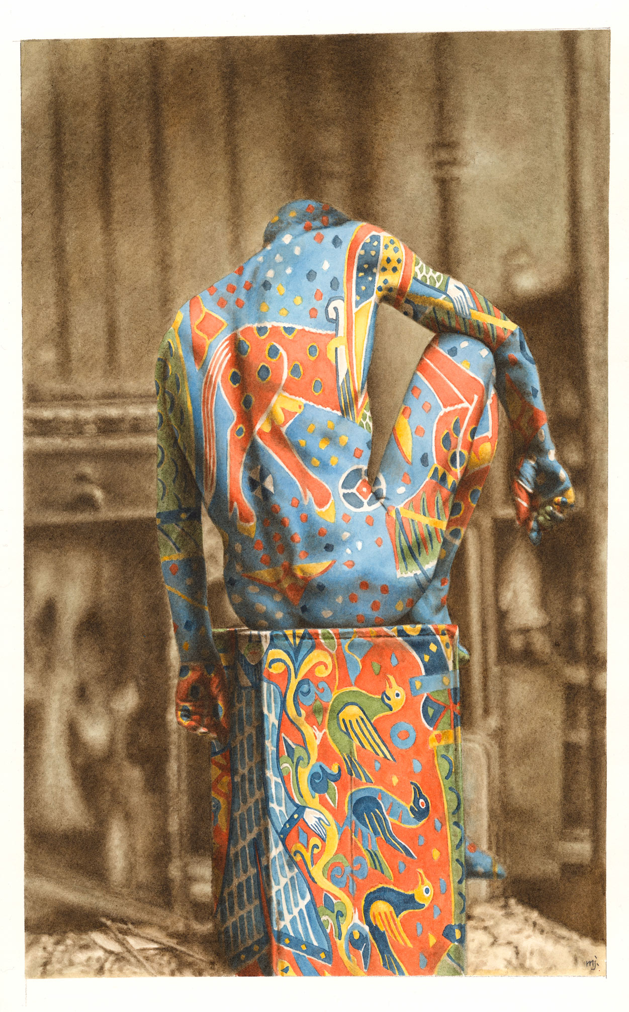 Elles ont une densité particulière, à la manière de rehauts colorés qui viendraient redonner vie et modernité à des images anciennes. À la manière de tatouages minutieux, appliqués comme de nouvelles peaux venues bousculer les normes établies. Ses aquarelles miment la porcelaine et en prennent l'aspect velouté et soyeux tandis qu'il joue avec l'image d'archive en reprenant les codes des anciennes photographies ethnographiques. Découvert sur la foire Drawing Now fin mars, le trait subtil de l'artiste belge Milan Jespers (née en 1992) est aussi sensuel que virtuose. Amoureux du document et de l'histoire, il interroge des représentations du passé tout en simulant l'illusion d'une réincarnation iconographique.