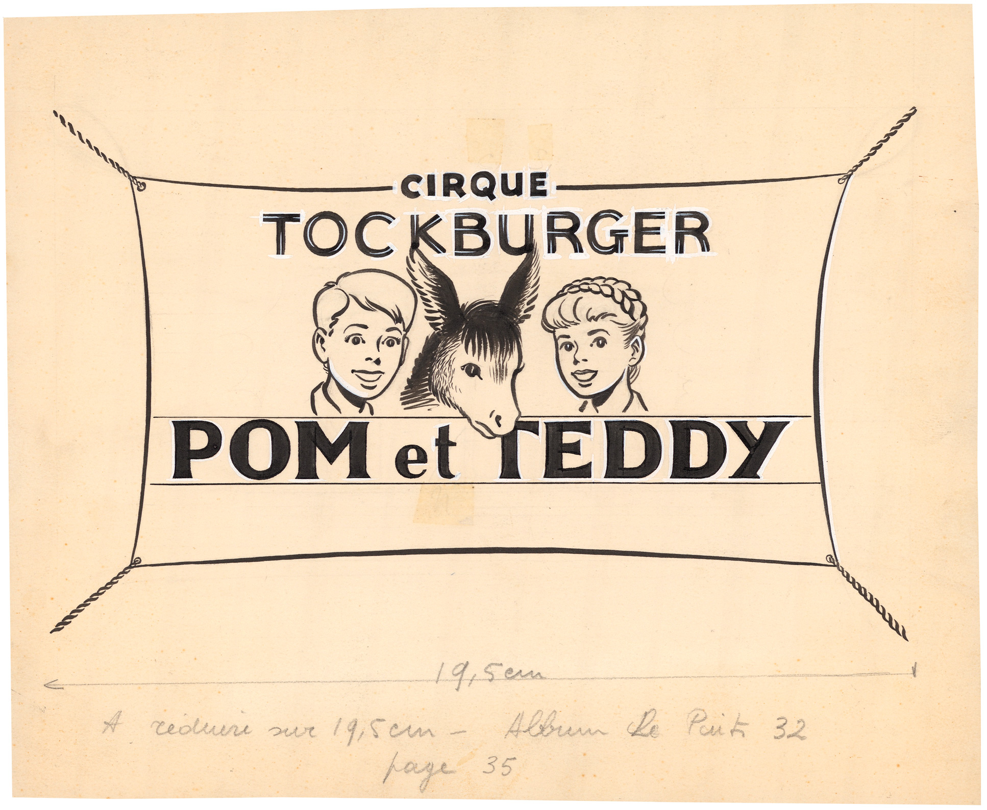 François Craenhals, Rémy et Ghislaine, Le puits 32, 1955, dessin annone de la série Pom et Teddy reproduit en dernière page de l'album
