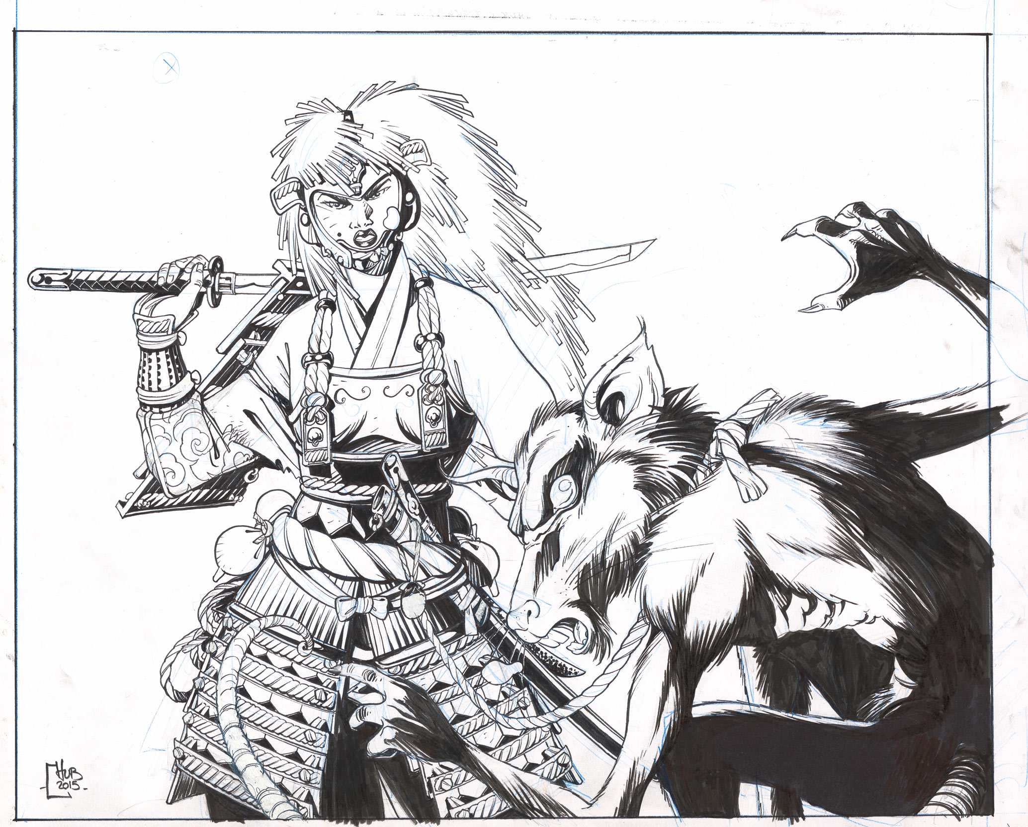 Hub - Setsuka et Nuuk, 2015, dessin utilisé comme base d'une grande toile à l'acrylique.