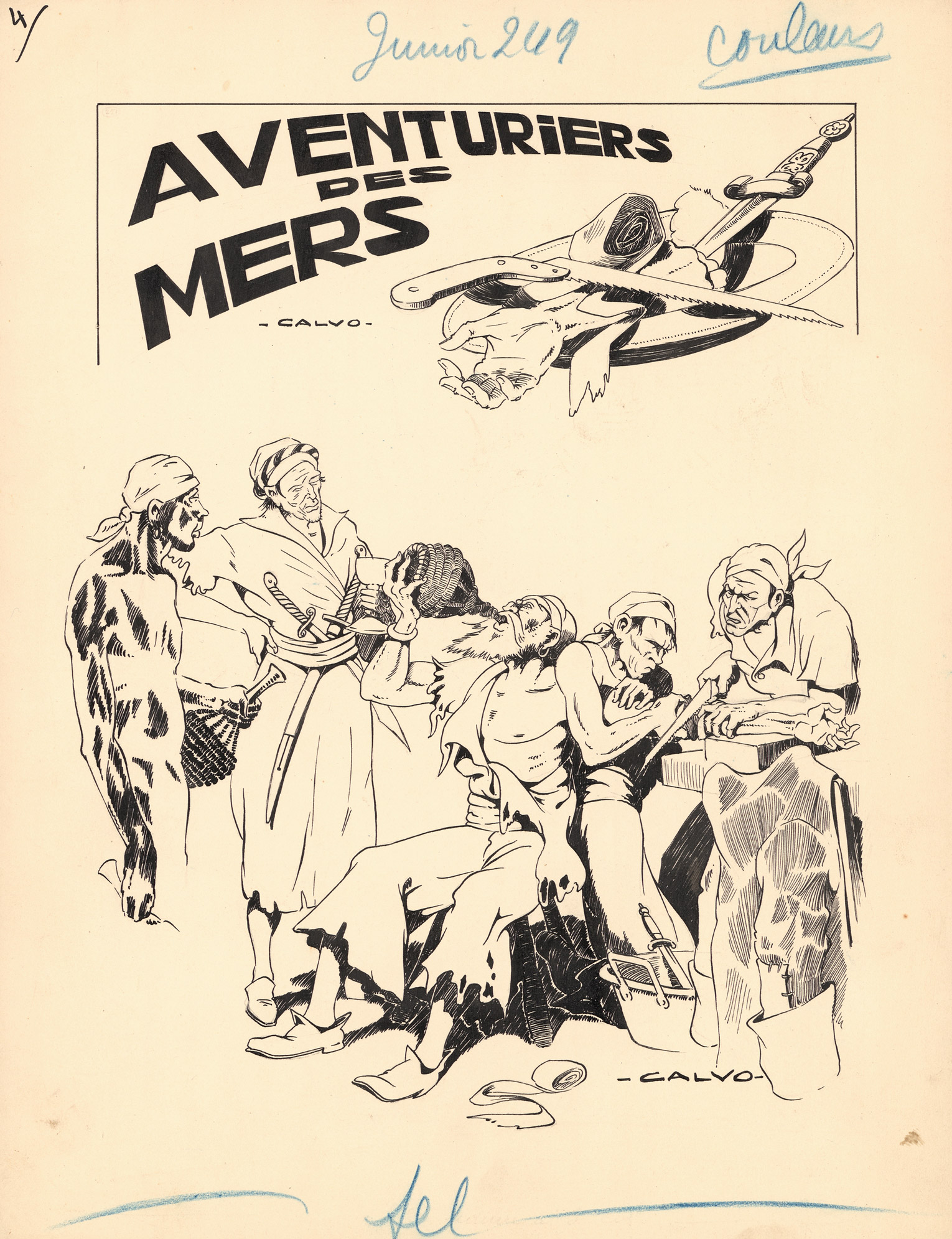 Edmond-François Calvo - Hurleloup, l'épervier des mers, 1941, illustration publié dans le n° 202 du magazine Junior du 14 mars 1941