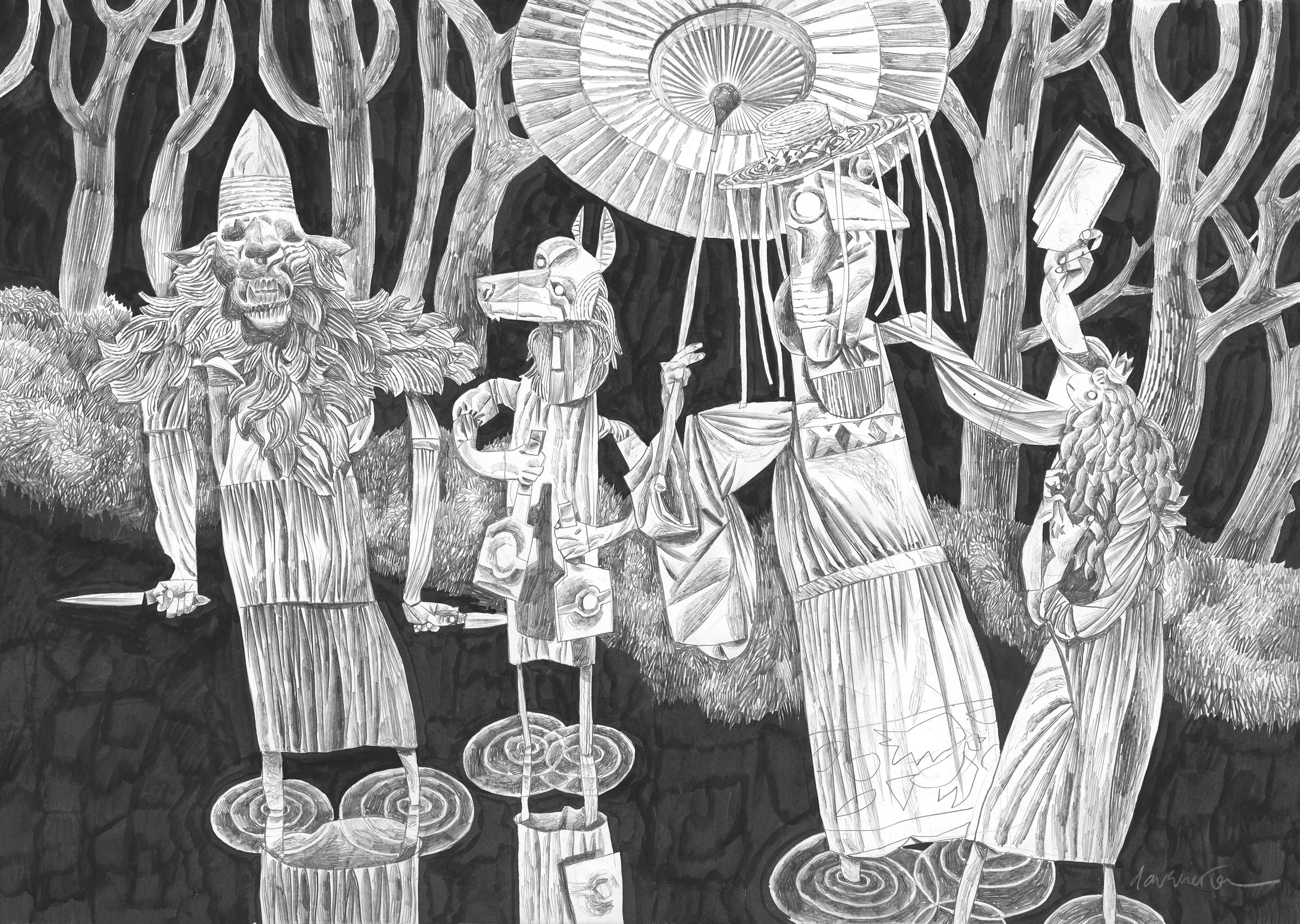 Dave McKean, Gormenghast, Procession, Publié dans l'édition Folio de Gormenghast de Mervyn Peake