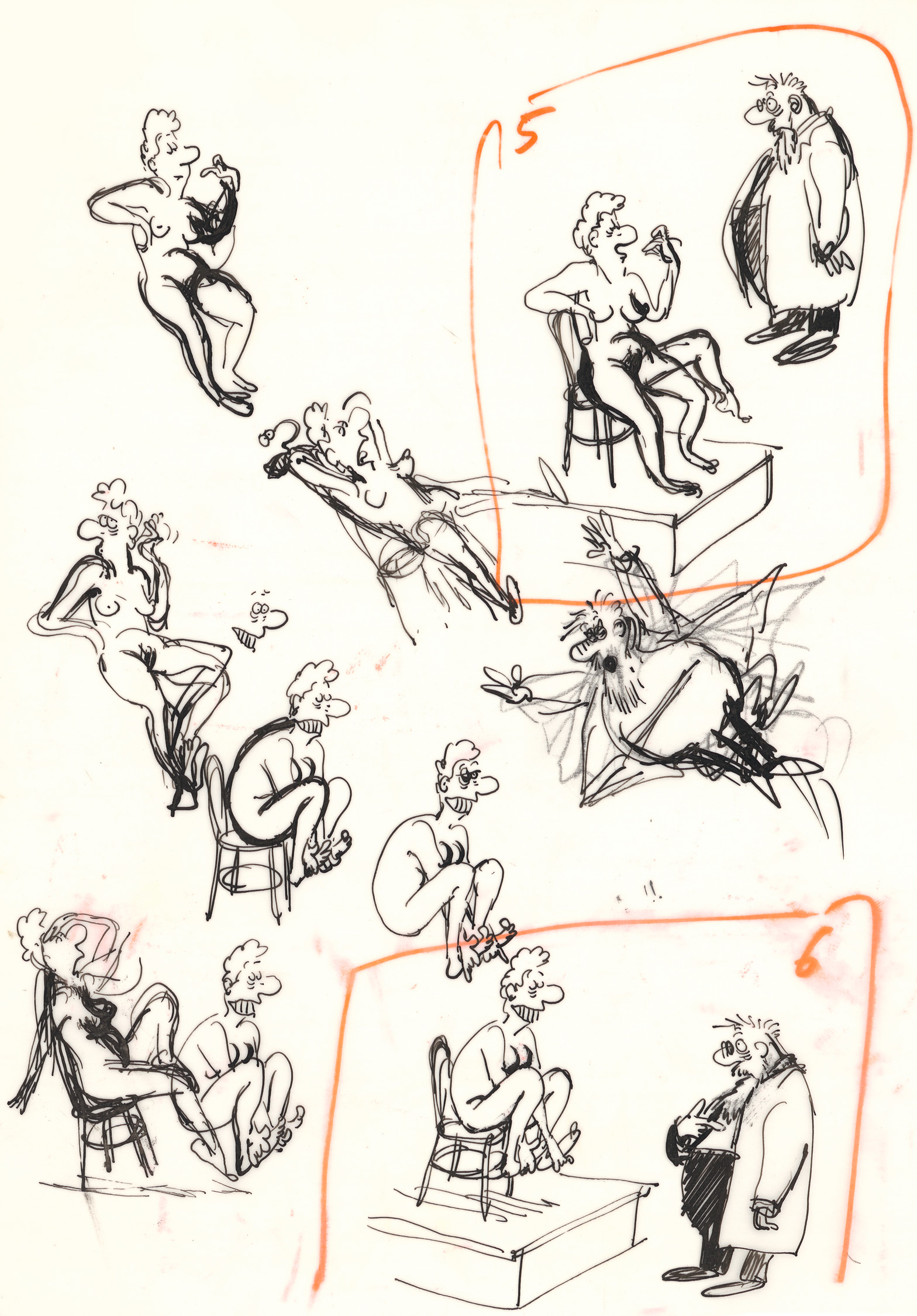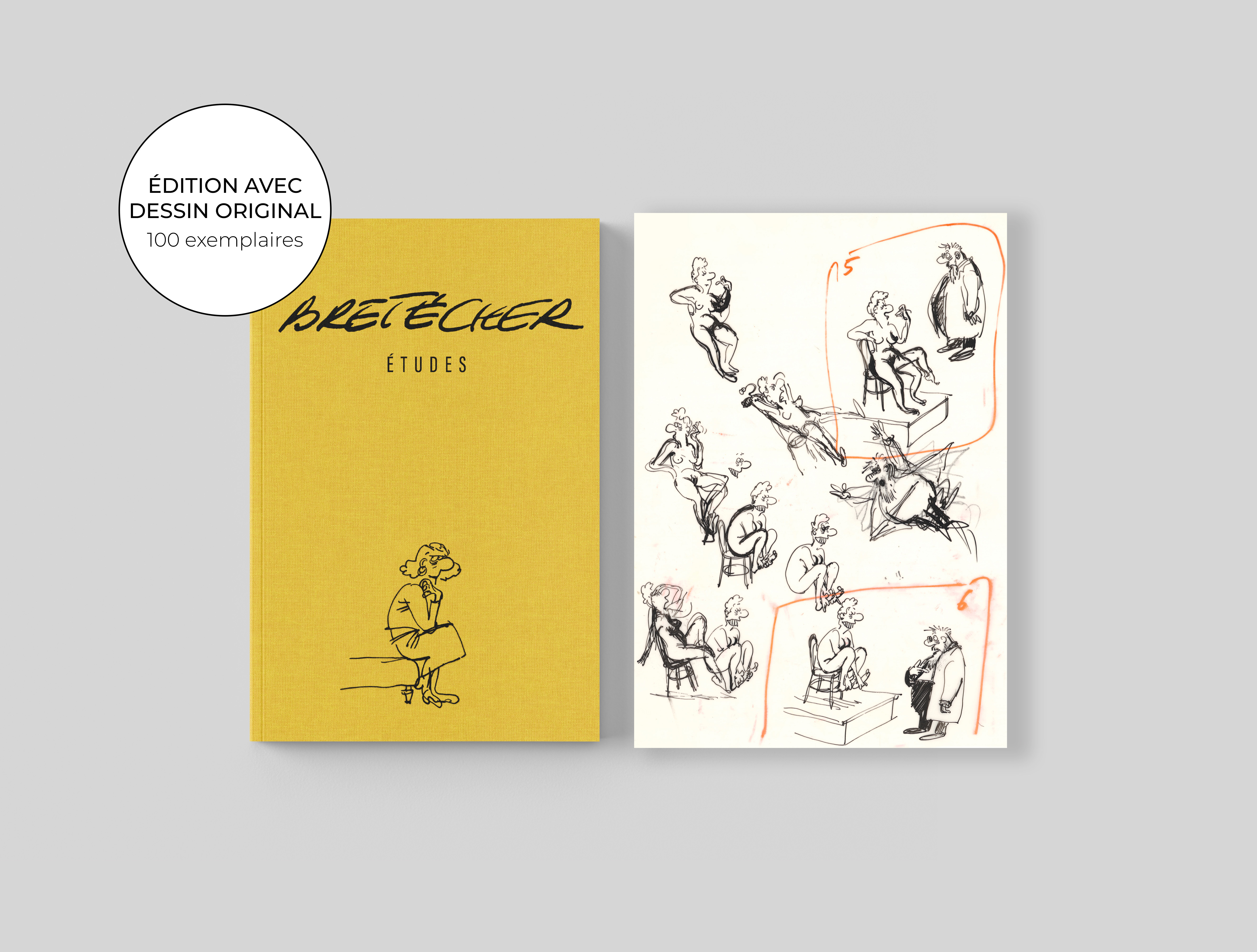 Claire Bretécher - Études, 14, 2025, Cet exemplaire numéroté 14/100 est accompagné d'un dessin original sur calque, utilisé comme étude préparatoire pour Mouler Démouler, L'atelier de Rodin.