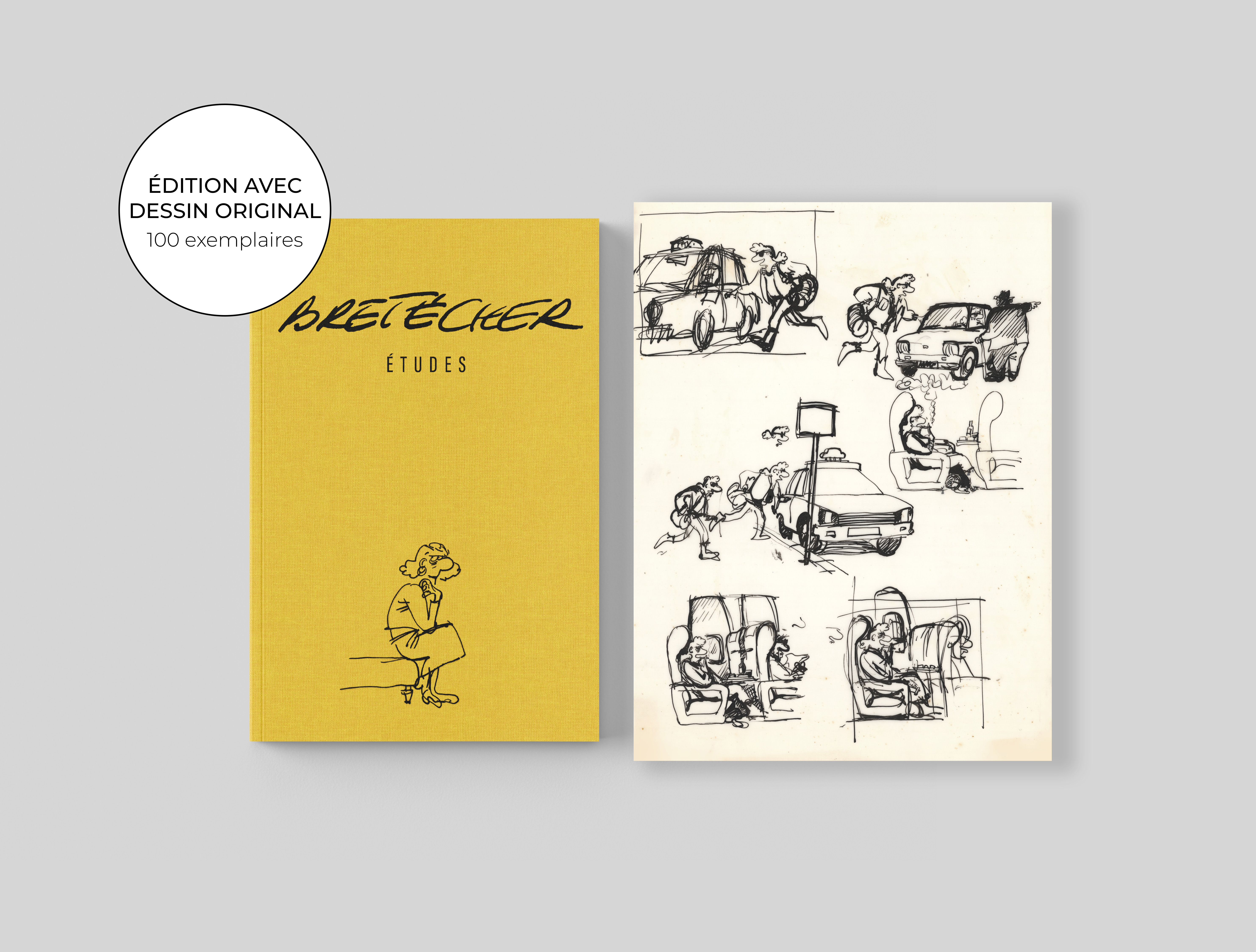 Claire Bretécher - Études, 18, 2025, Cet exemplaire numéroté 18/100 est accompagné d'un dessin original sur calque, utilisé comme étude préparatoire pour Le Destin de Monique, page 22.