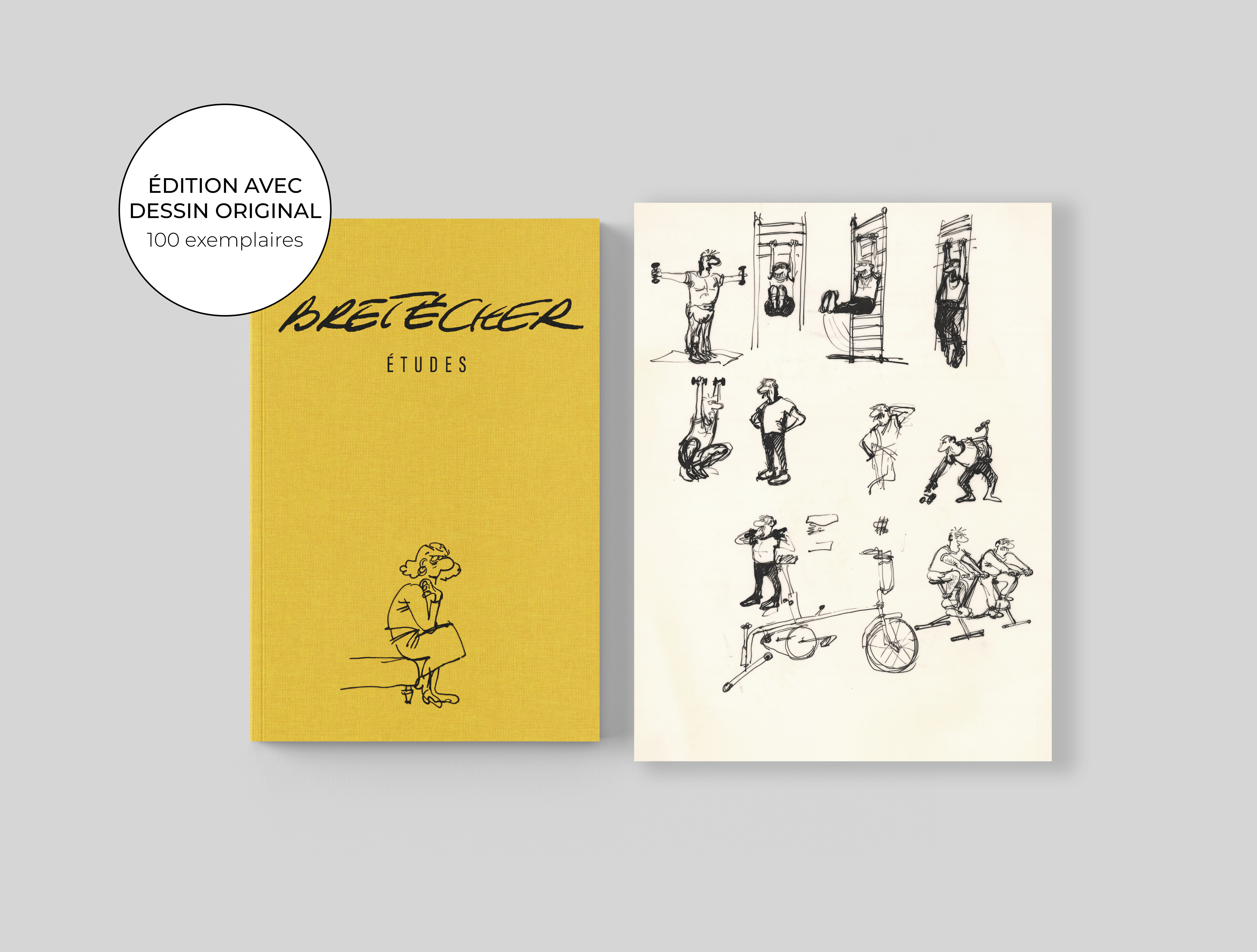 Claire Bretécher - Études, 21, 2025, Cet exemplaire numéroté 21/100 est accompagné d'un dessin original sur calque, utilisé comme étude préparatoire pour Les mères, Bernard et René.