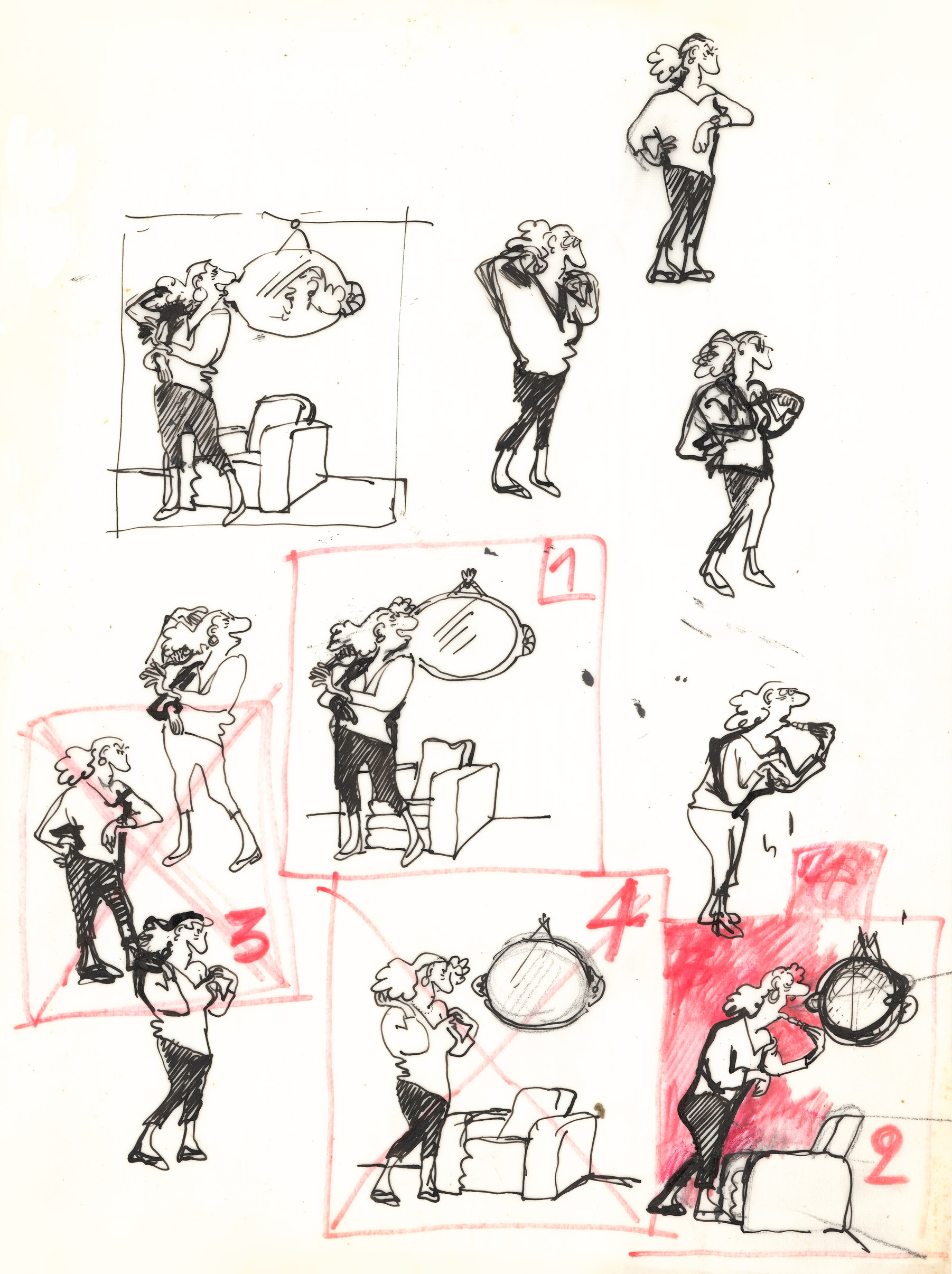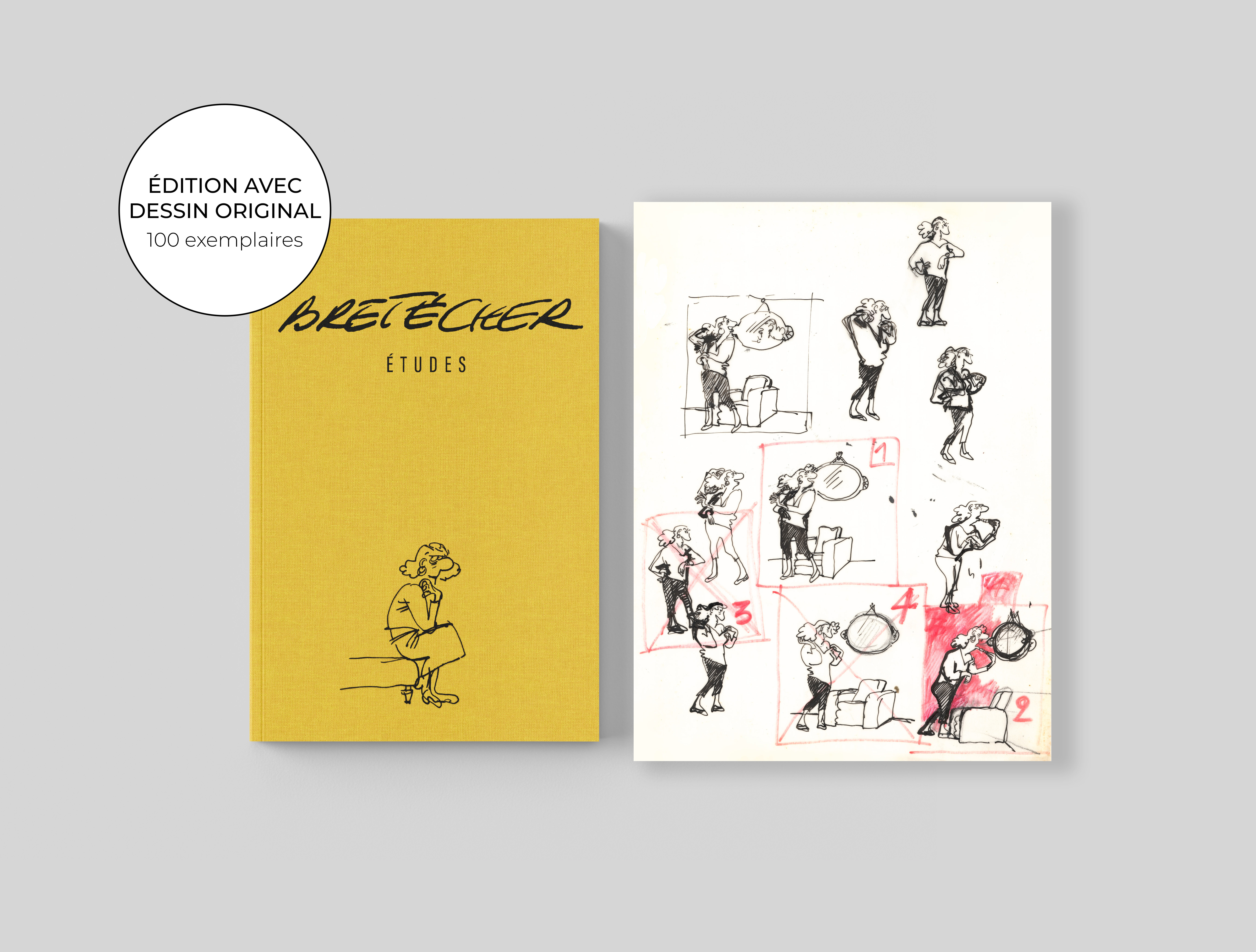 Claire Bretécher - Études, 22, 2025, Cet exemplaire numéroté 22/100 est accompagné d'un dessin original sur calque, utilisé comme étude préparatoire pour Le Destin de Monique, page 1.