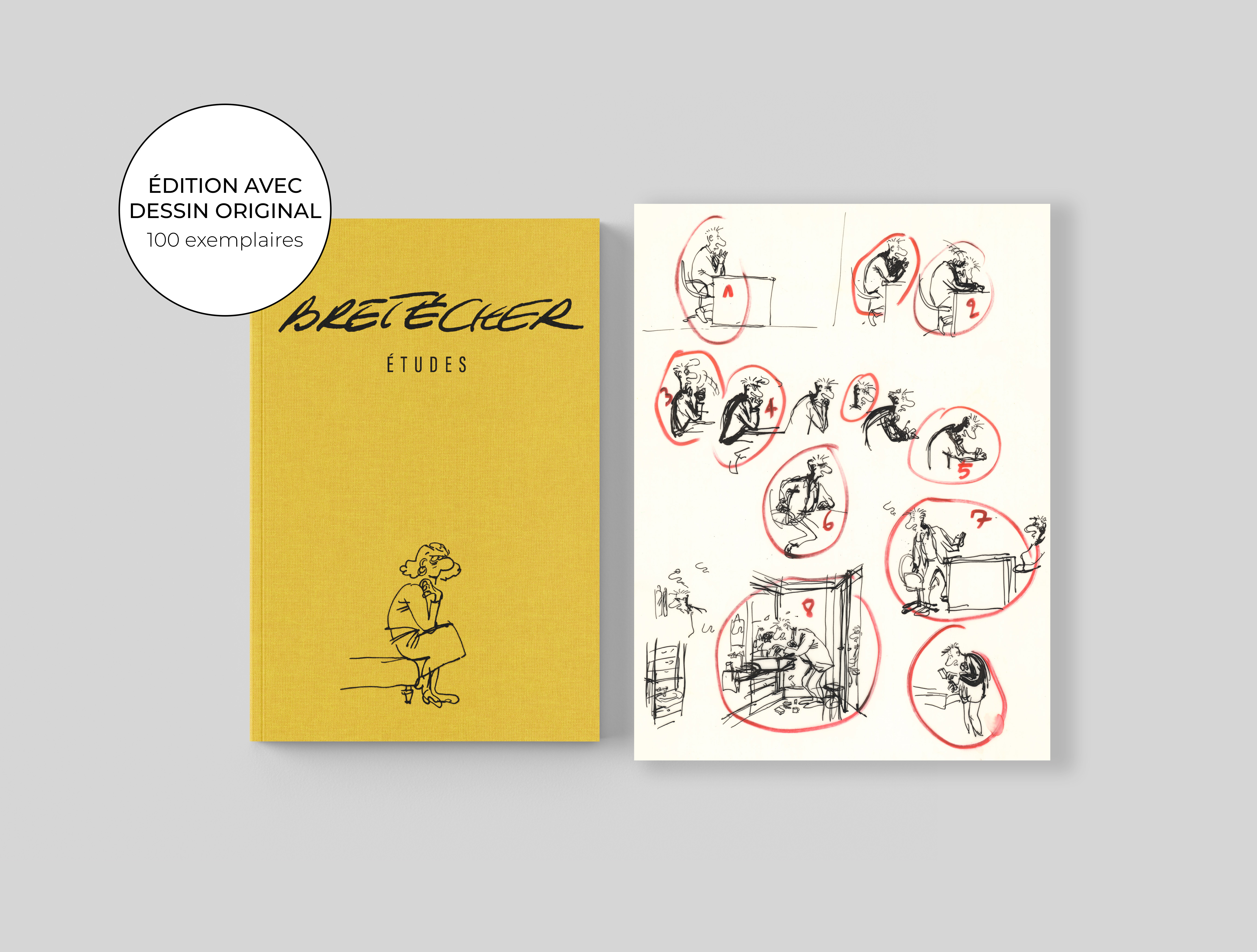 Claire Bretécher - Études, 27, 2025, Cet exemplaire numéroté 27/100 est accompagné d'un dessin original sur calque, utilisé comme étude préparatoire pour Docteur Ventouse Bobologue, Bobo marée basse.