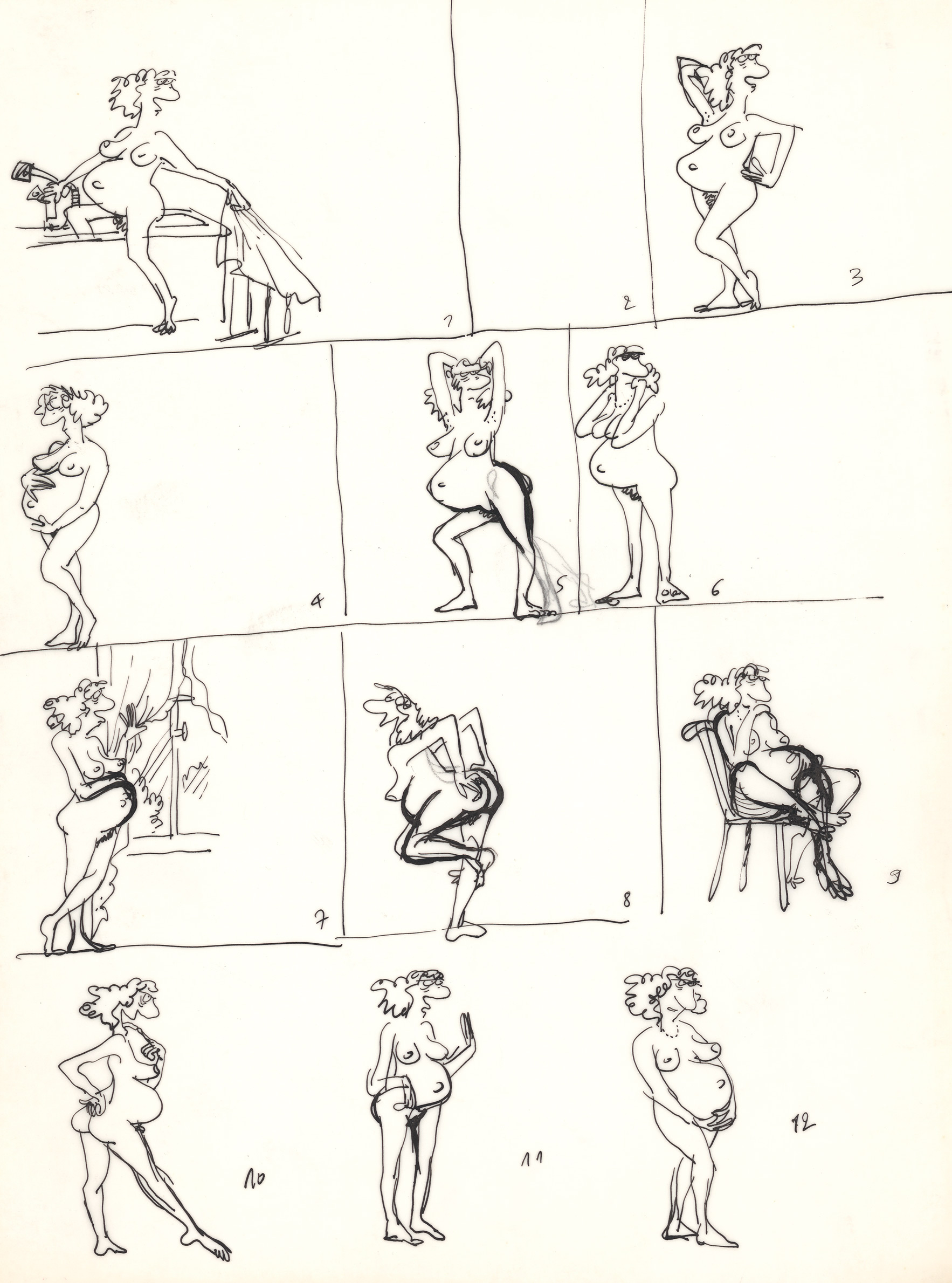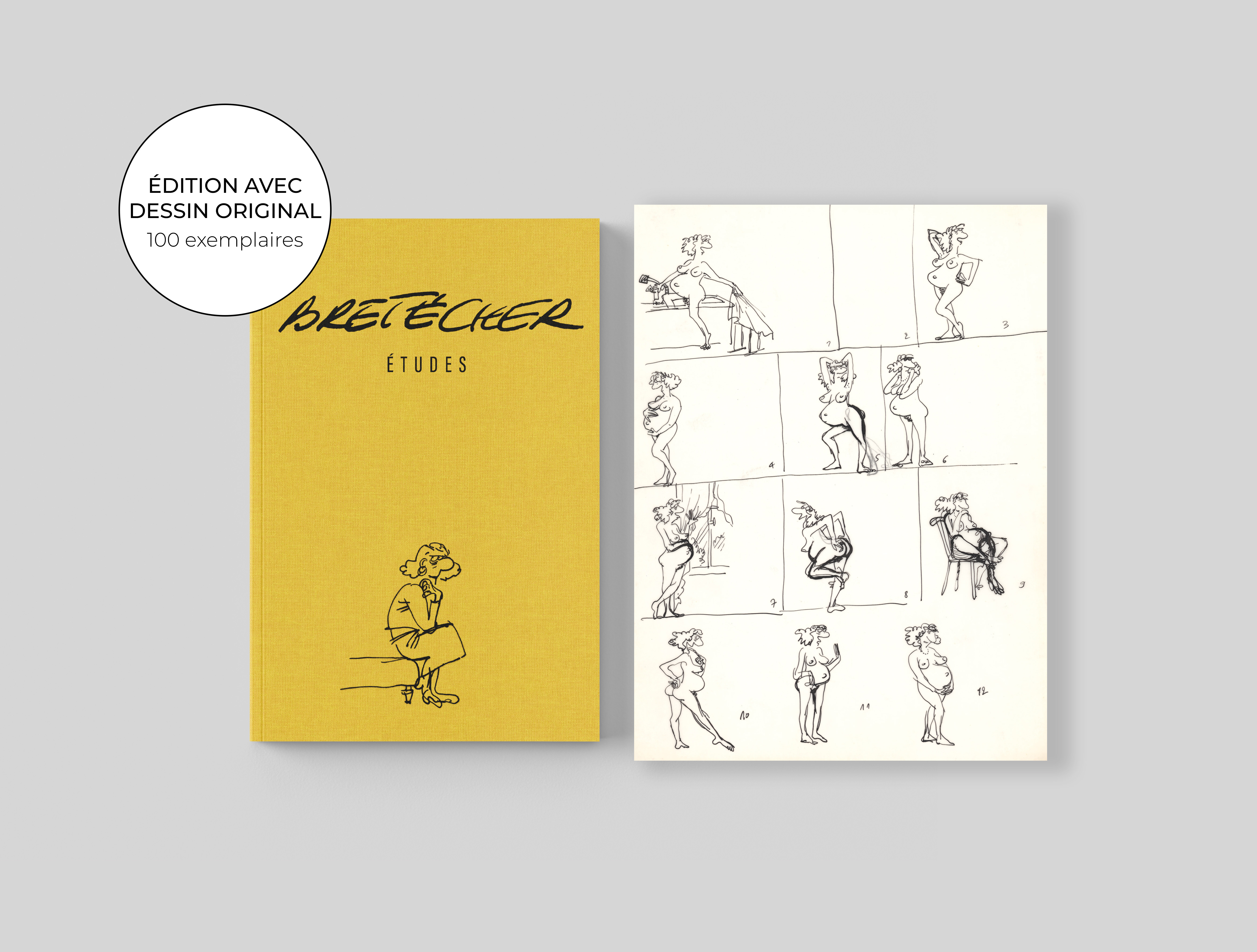 Claire Bretécher - Études, 29, 2025, Cet exemplaire numéroté 29/100 est accompagné d'un dessin original sur calque, utilisé comme étude préparatoire pour Les mères, Playmate.