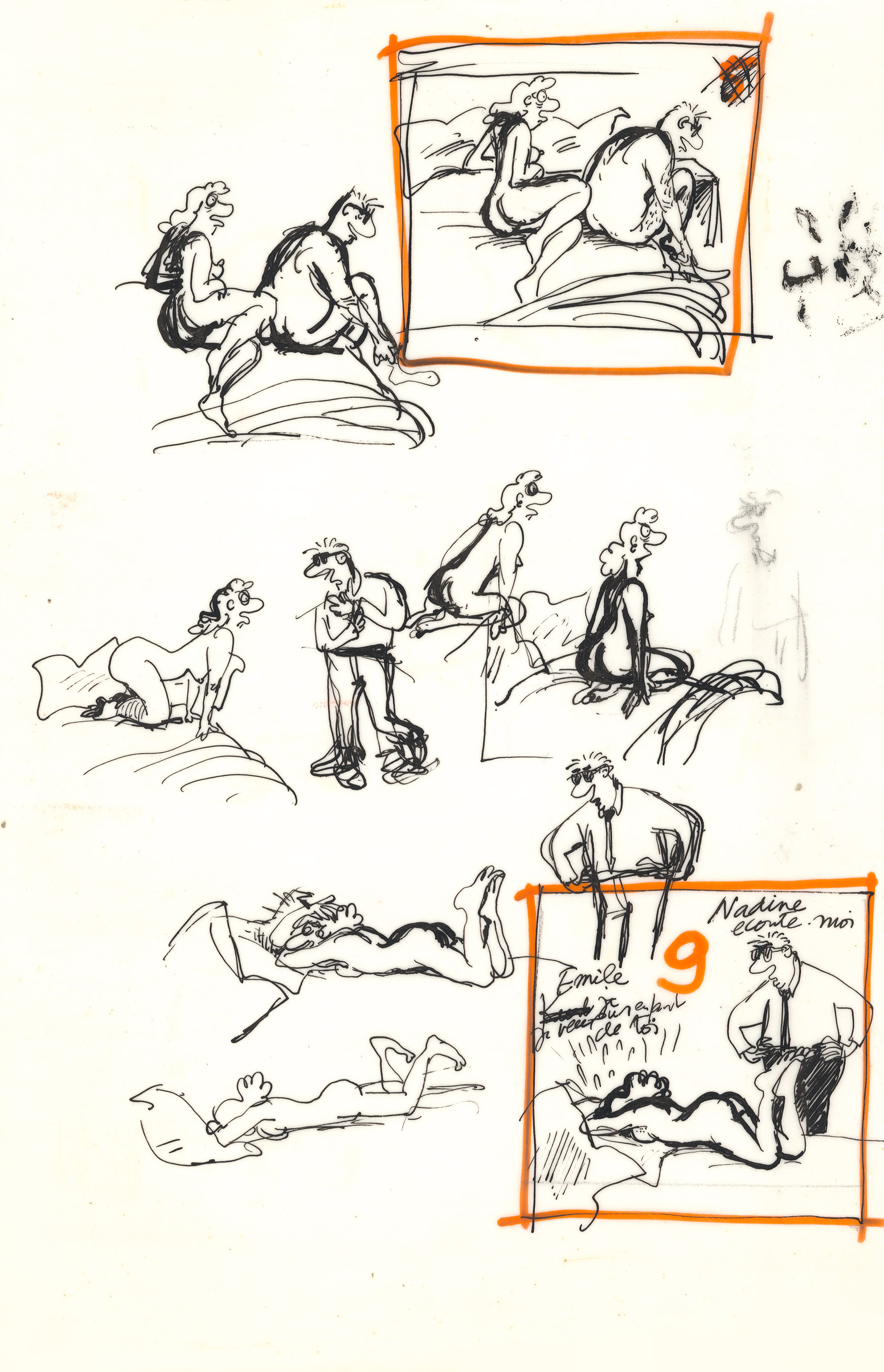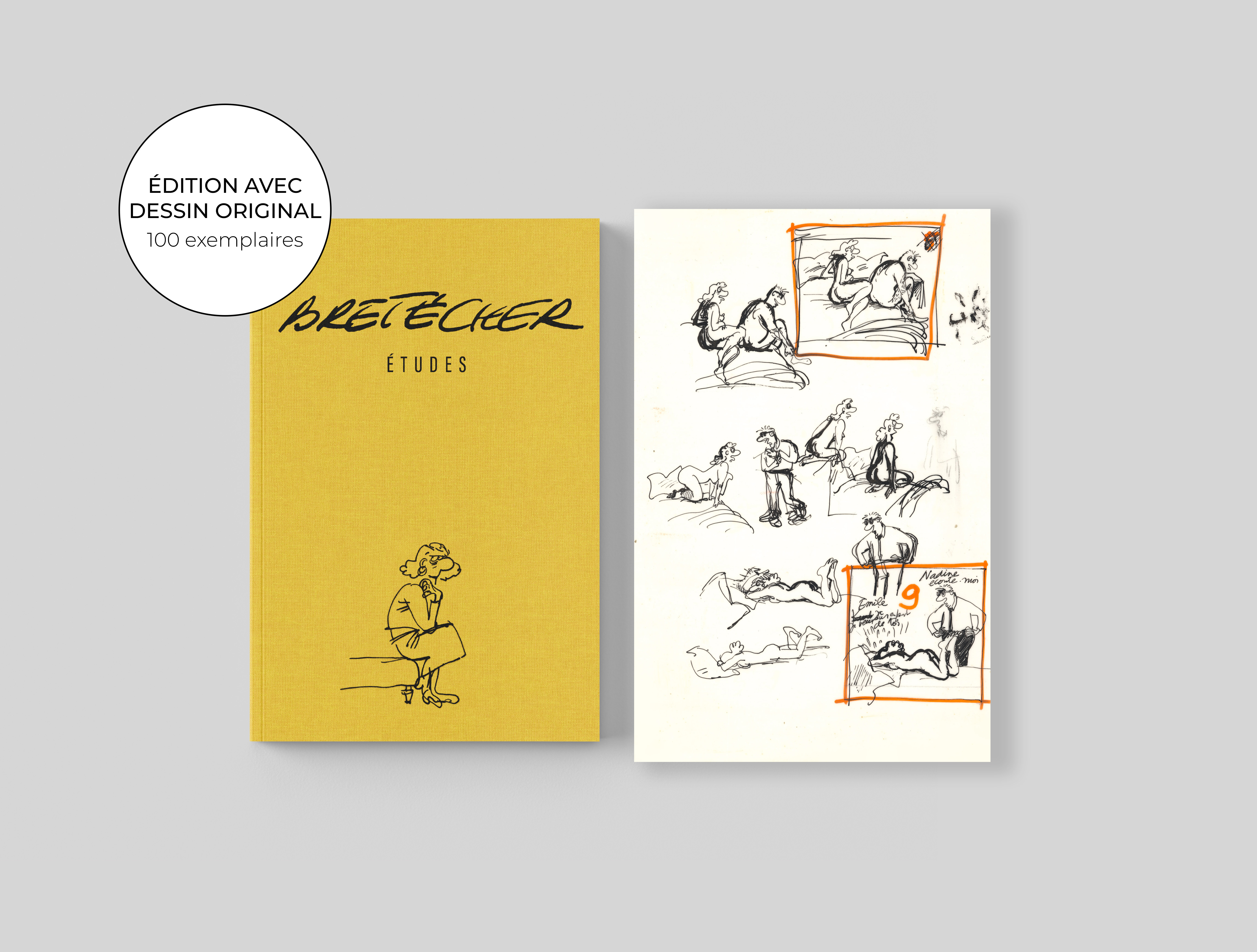 Claire Bretécher - Études, 38, 2025, Cet exemplaire numéroté 38/100 est accompagné d'un dessin original sur calque, utilisé comme étude préparatoire pour Le Destin de Monique, page 3.