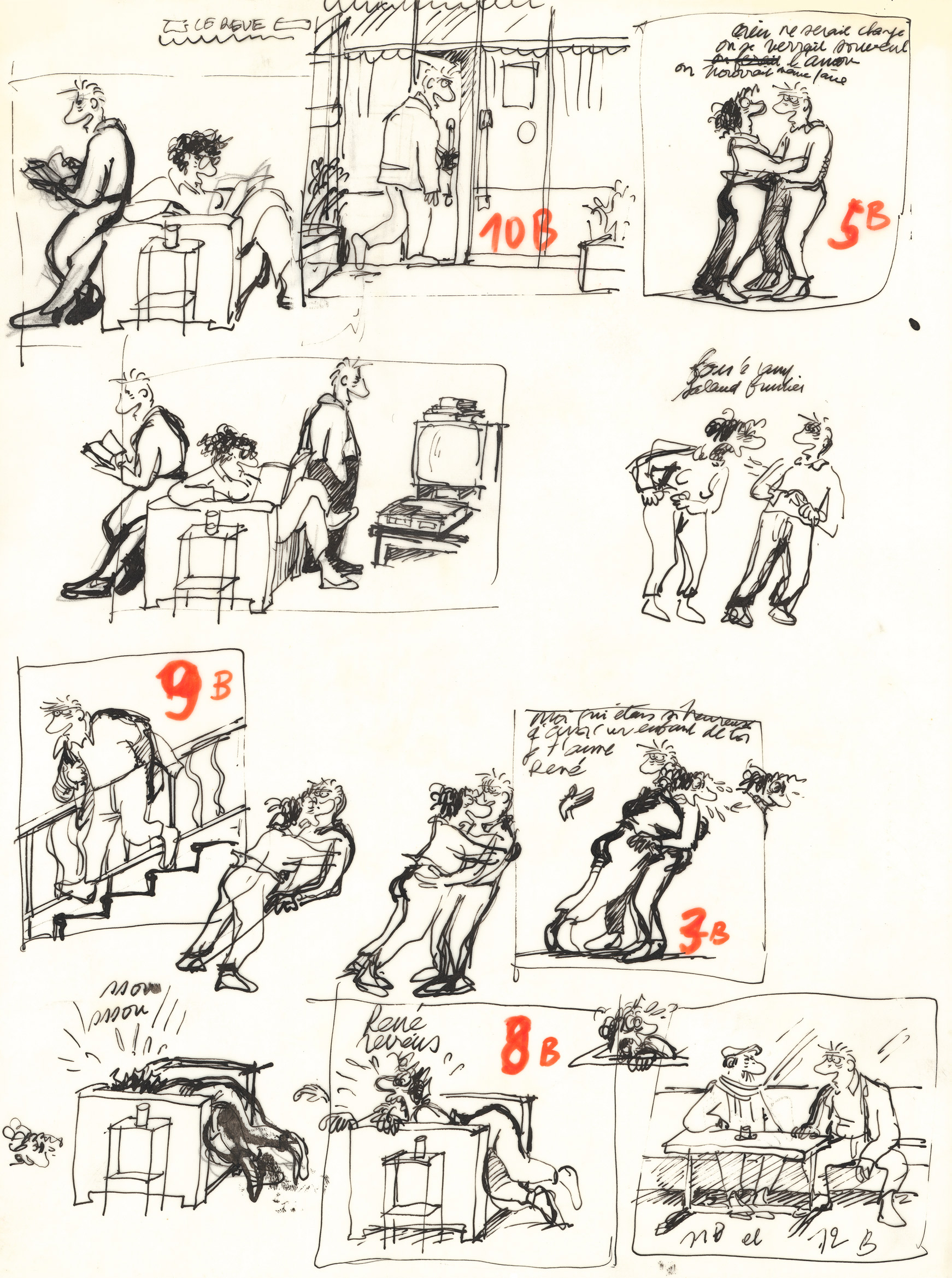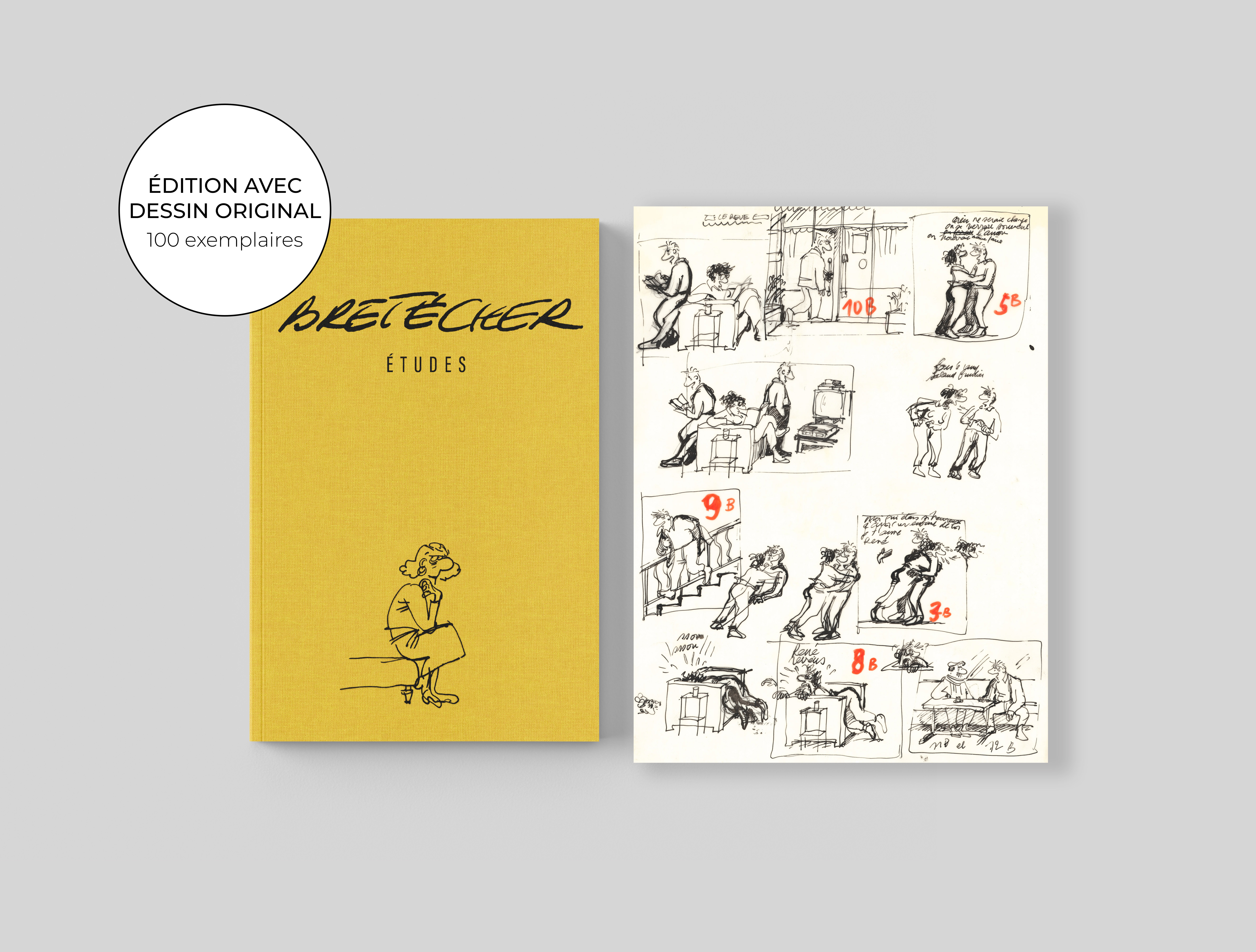 Claire Bretécher - Études, 43, 2025, Cet exemplaire numéroté 43/100 est accompagné d'un dessin original sur calque, utilisé comme étude préparatoire pour Les mères, Bernard et René.