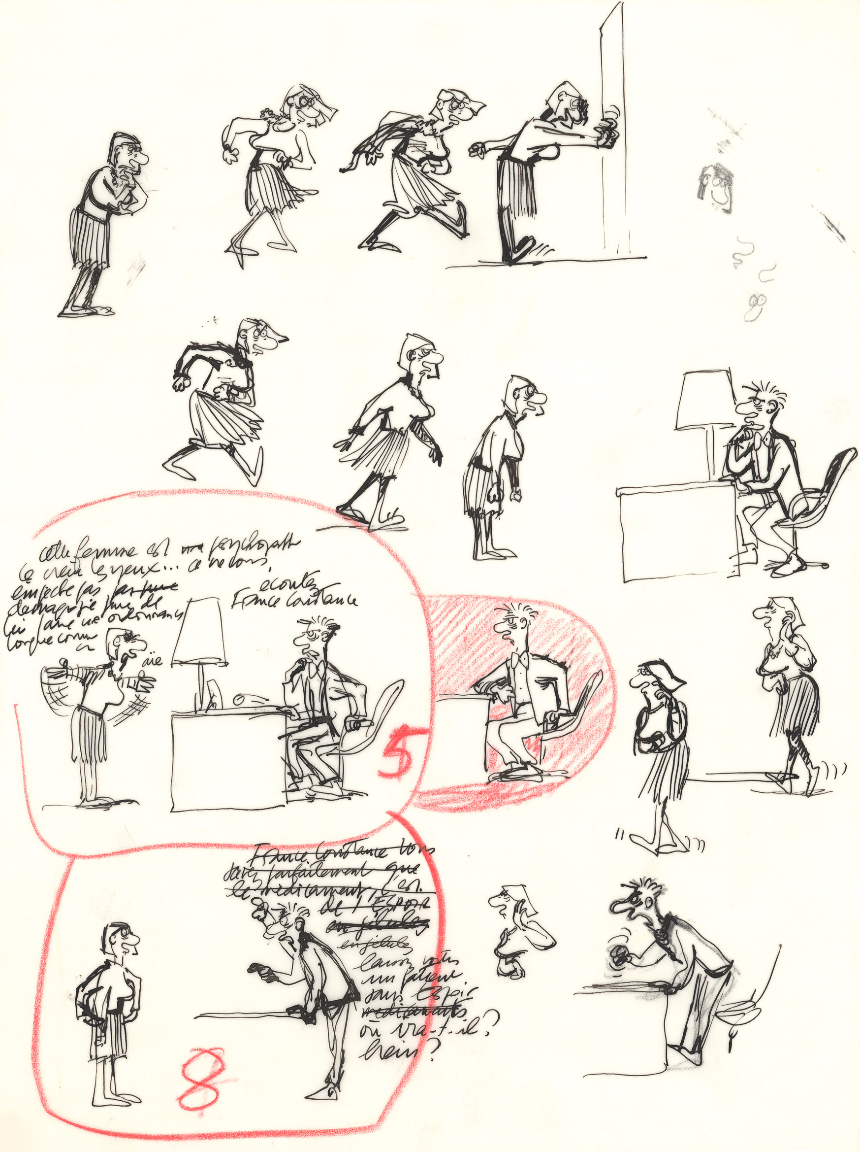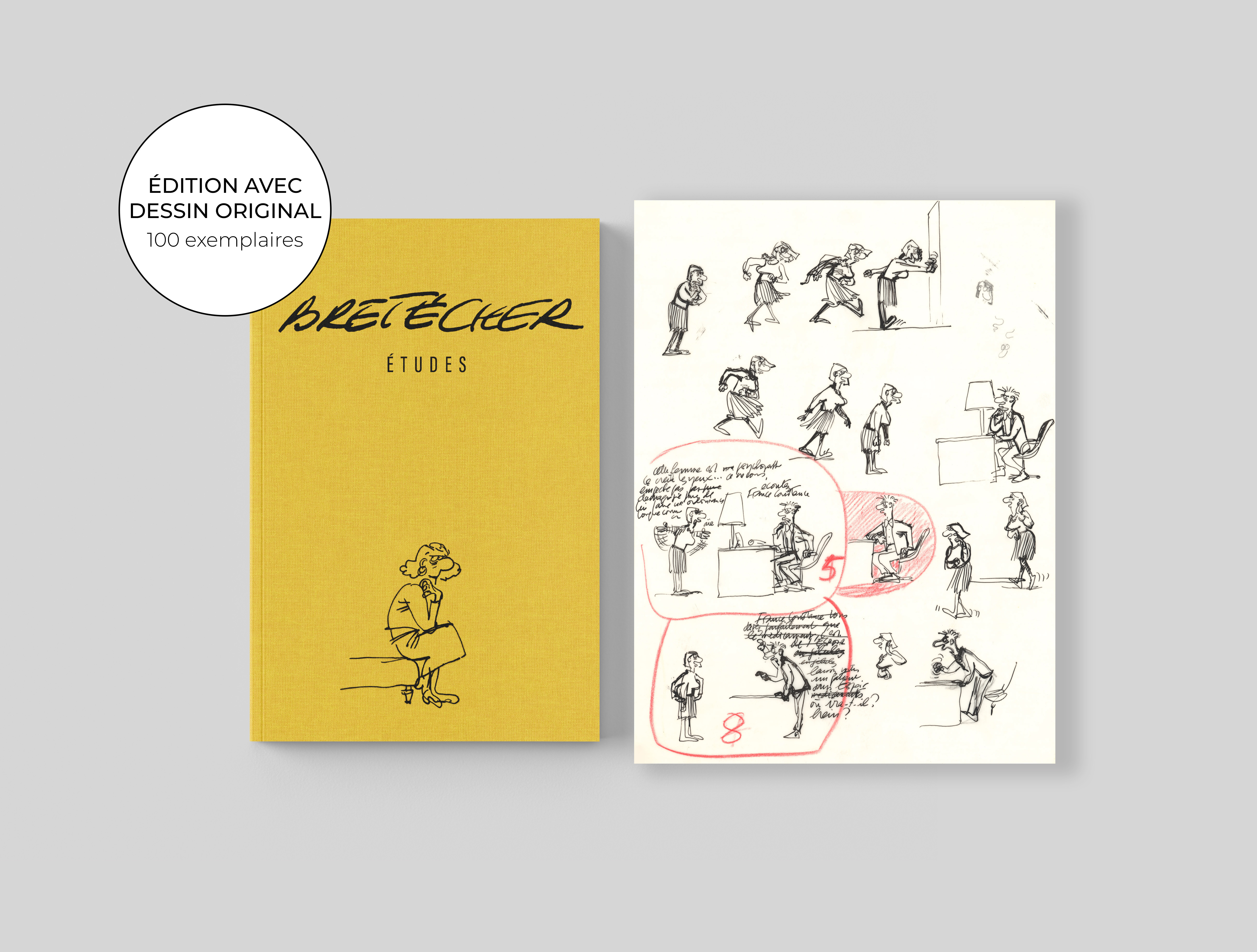 Claire Bretécher - Études, 52, 2025, Cet exemplaire numéroté 52/100 est accompagné d'un dessin original sur calque, utilisé comme étude préparatoire pour Docteur Ventouse Bobologue, Bobosport.