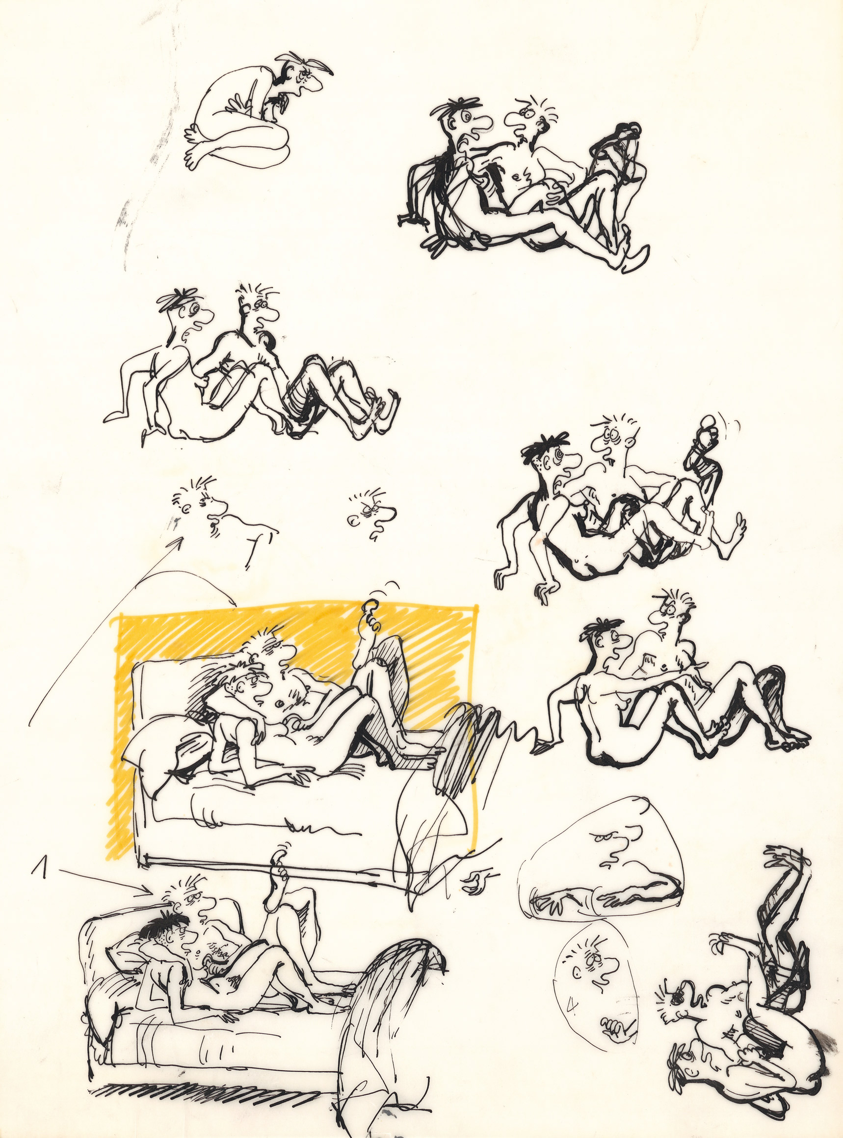 Claire Bretécher - Études, 53, 2025, Cet exemplaire numéroté 53/100 est accompagné d'un dessin original sur calque, utilisé comme étude préparatoire pour Docteur Ventouse Bobologue, Rancoeurs.