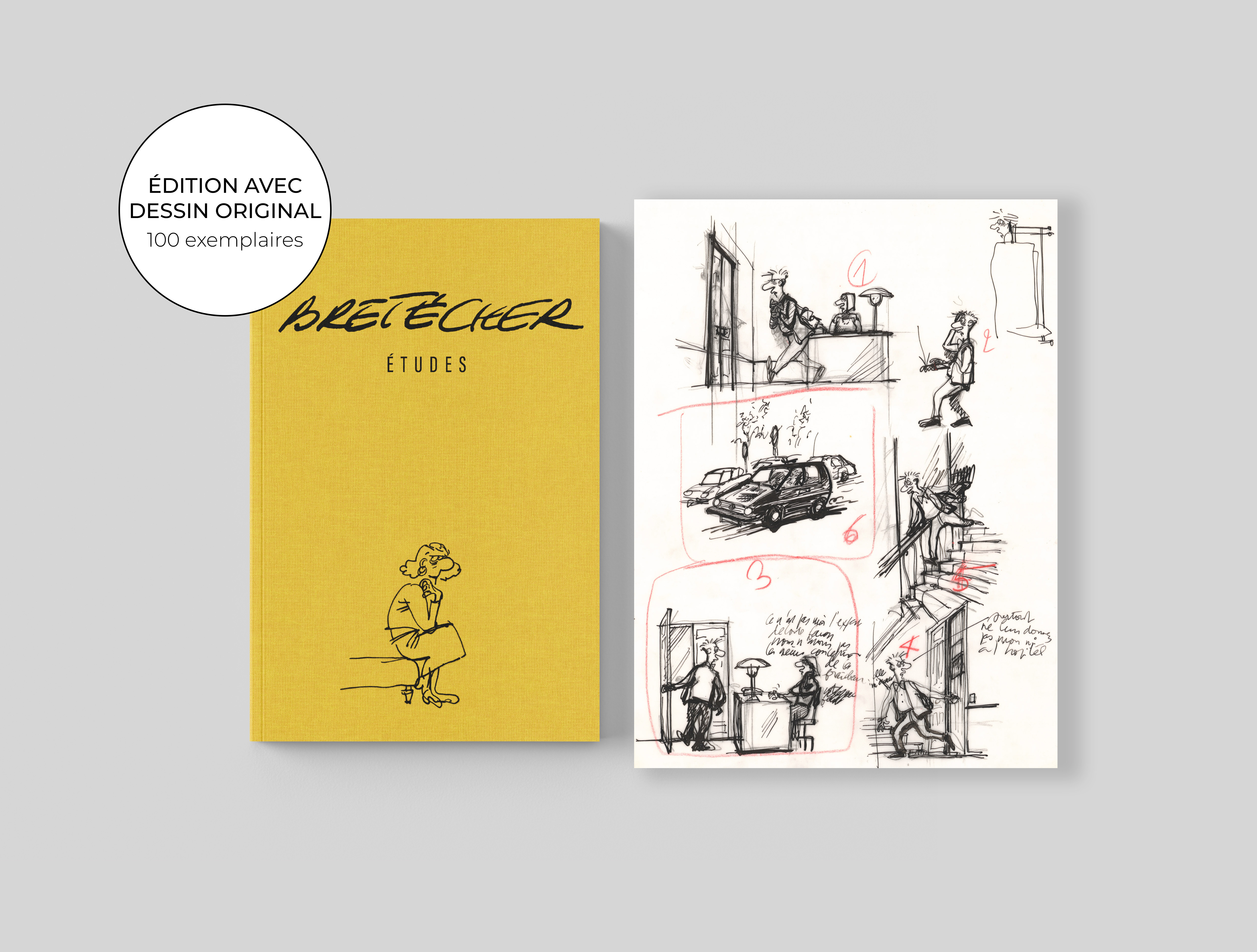 Claire Bretécher - Études, 55, 2025, Cet exemplaire numéroté 55/100 est accompagné d'un dessin original sur calque, utilisé comme étude préparatoire pour Docteur Ventouse Bobologue, Urgobobo.