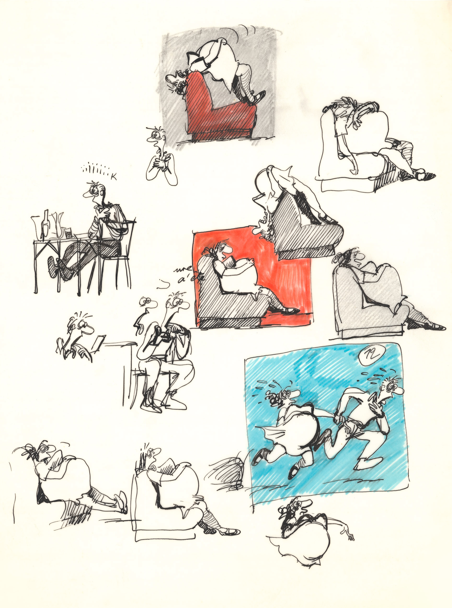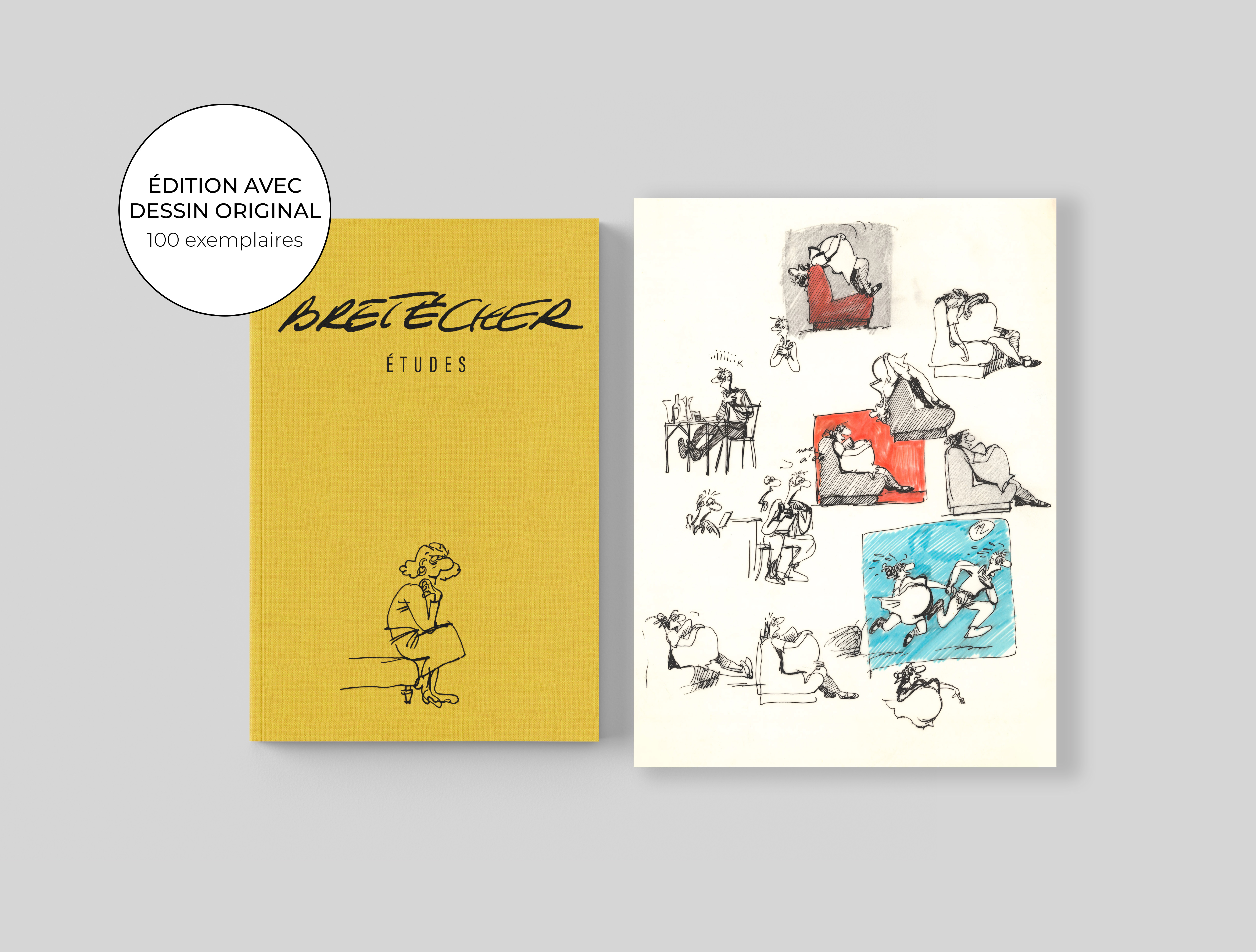 Claire Bretécher - Études, 64, 2025, Cet exemplaire numéroté 64/100 est accompagné d'un dessin original sur calque, utilisé comme étude préparatoire pour Les mères, Dernier souffle.