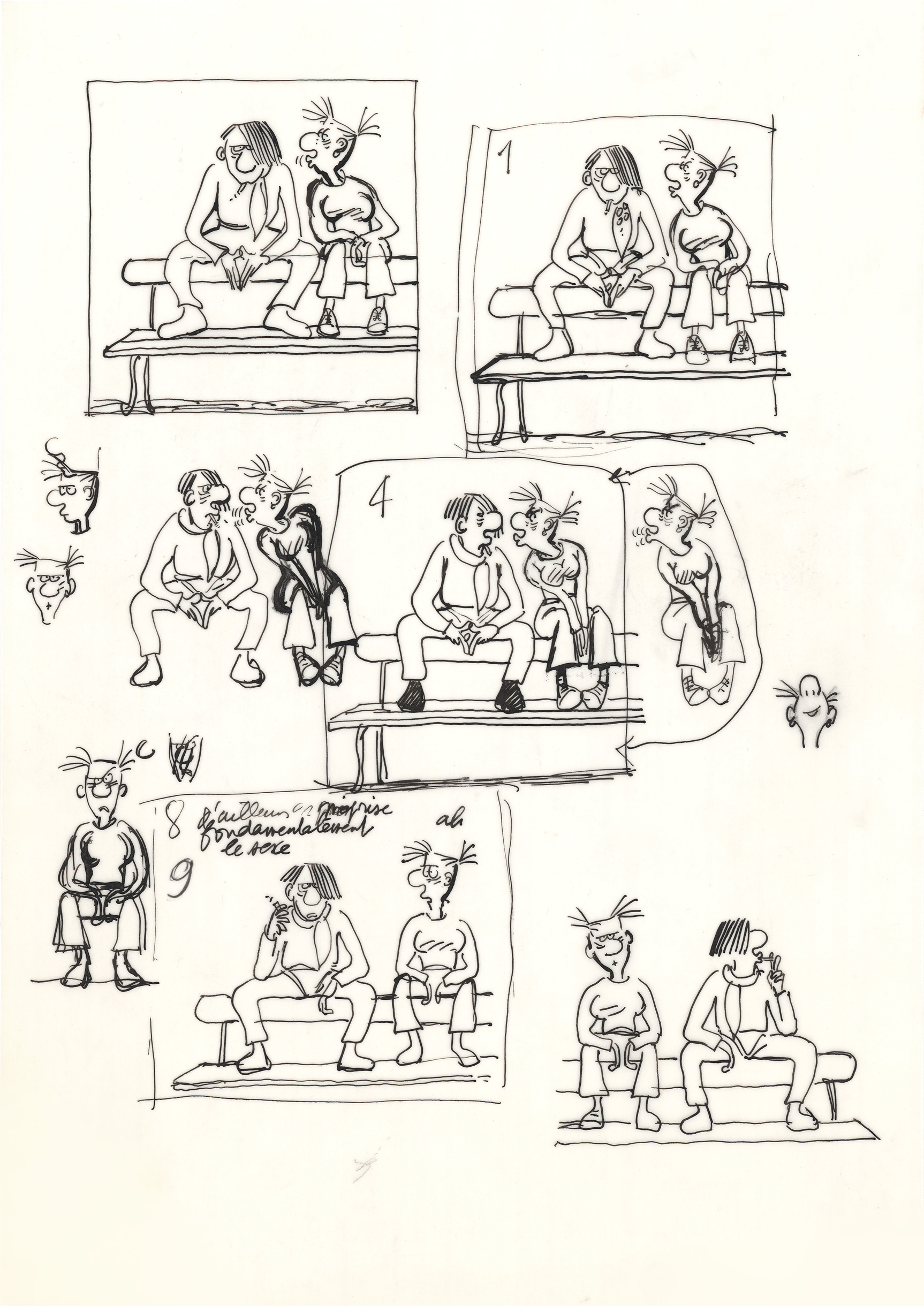 Claire Bretécher - Études, 71, 2025, Cet exemplaire numéroté 71/100 est accompagné d'un dessin original sur calque, utilisé comme étude préparatoire pour Agrippine, Les combats d'Agrippine - Tome 3, "Gazouillis".