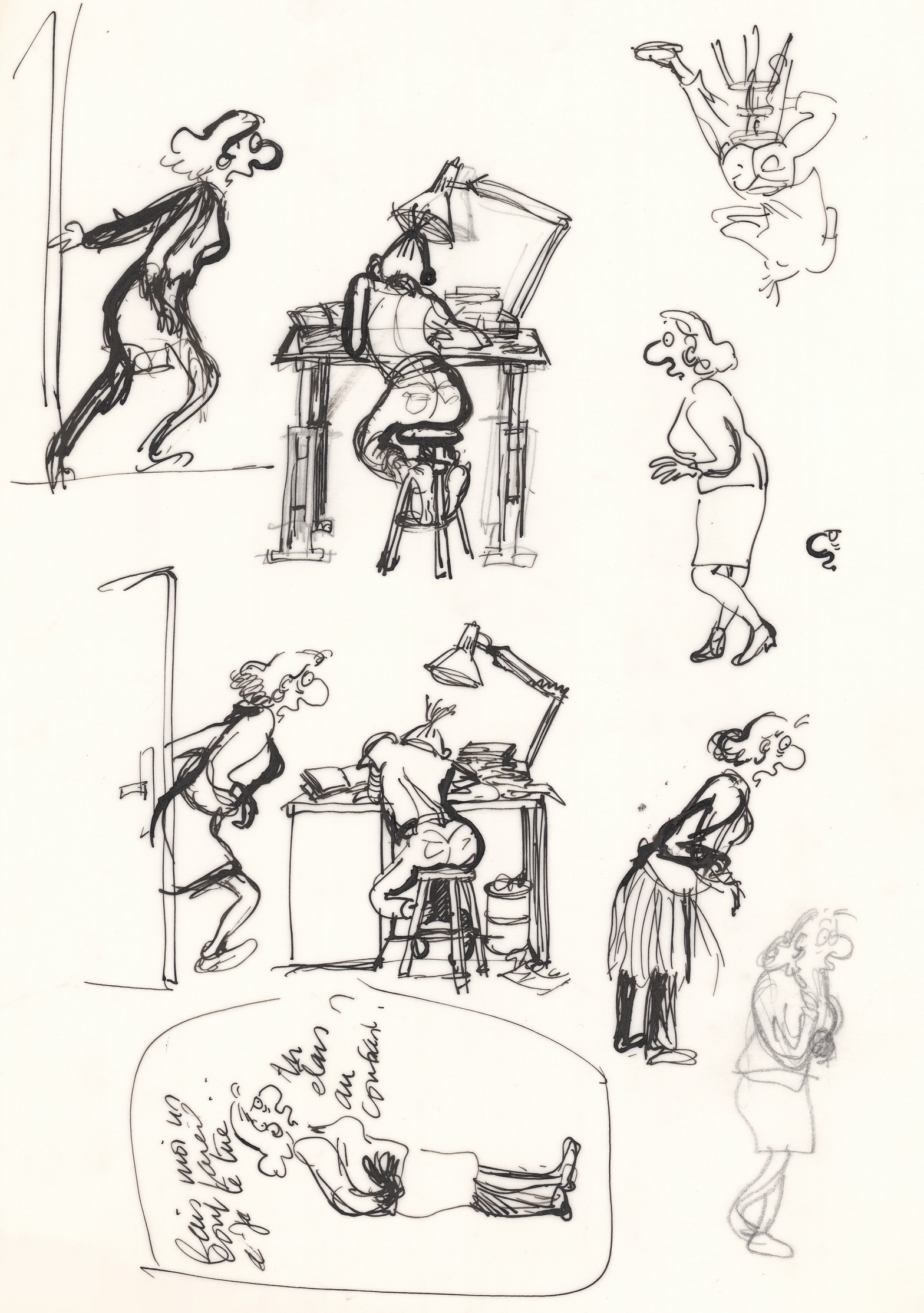 Claire Bretécher - Études, 91, 2025, Cet exemplaire numéroté 91/100 est accompagné d'un dessin original sur calque, utilisé comme étude préparatoire pour Agrippine, Agrippine prend vapeur - Tome 2, "Fin".
