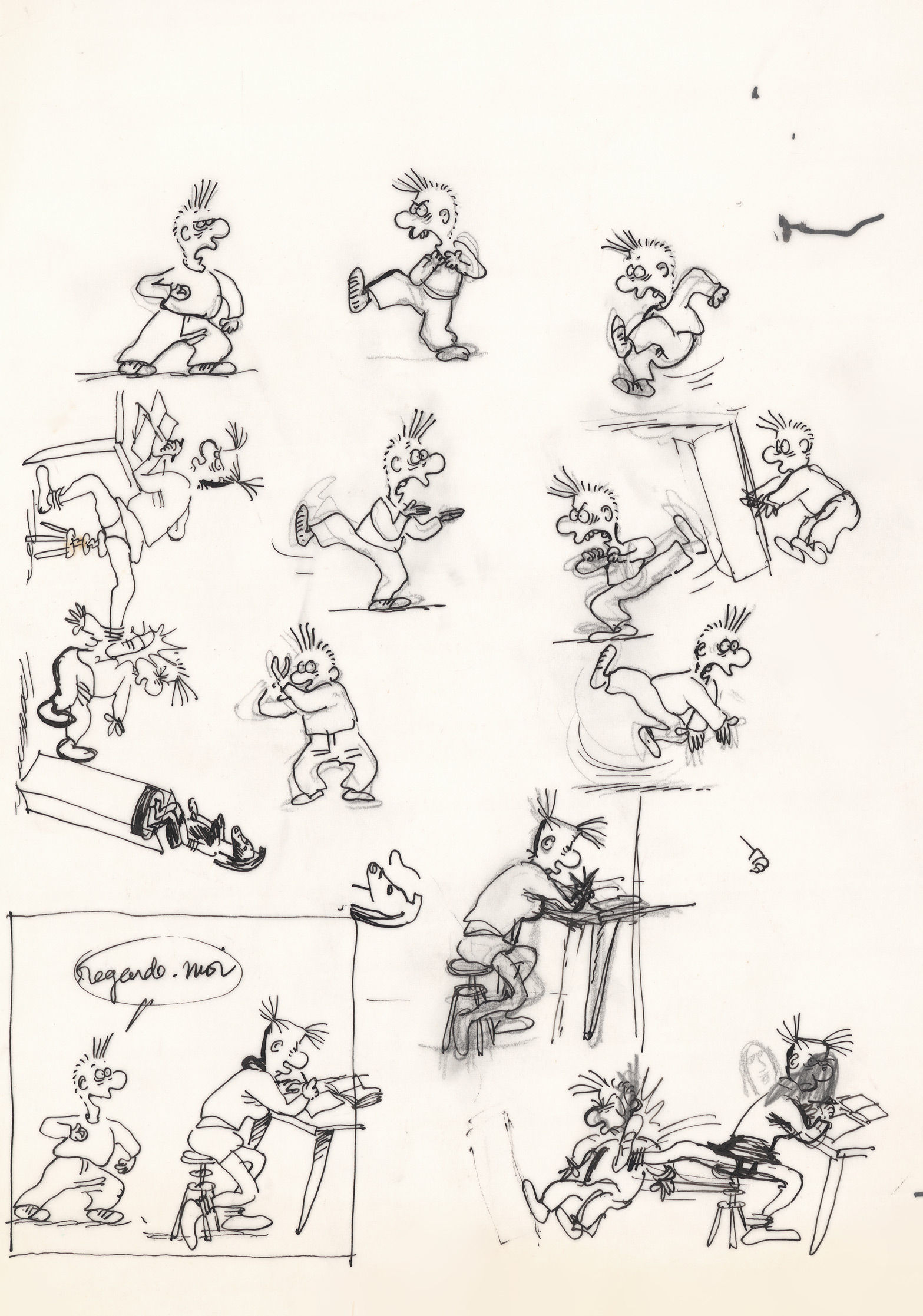 Claire Bretécher - Études, 96, 2025, Cet exemplaire numéroté 96/100 est accompagné d'un dessin original sur calque, utilisé comme étude préparatoire pour Agrippine, Les combats d'Agrippine - Tome 3, "Le fétiche".