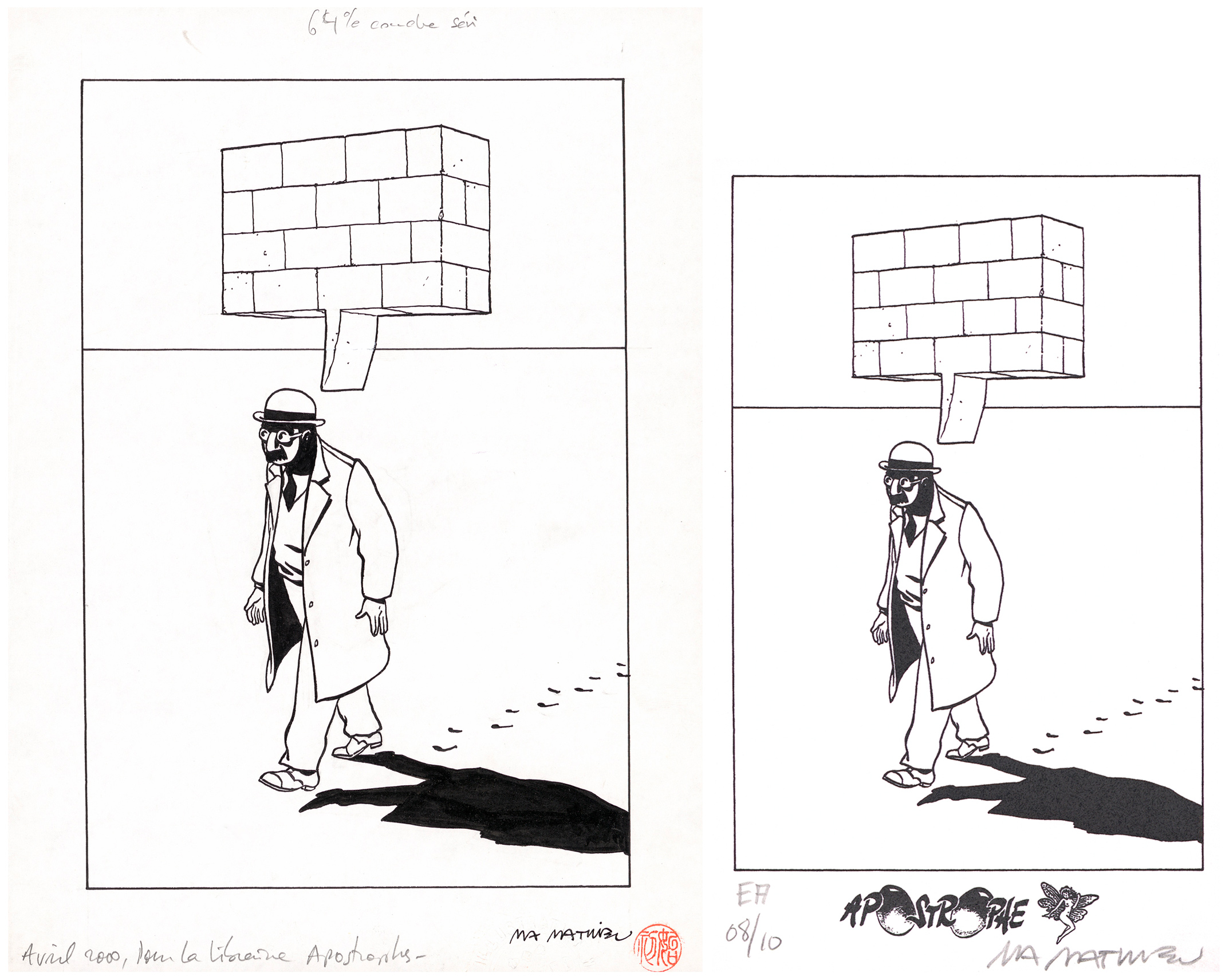 Marc-Antoine Mathieu - Apostrophe, 2000, Dessin avec ex-libris E.A. 08/10