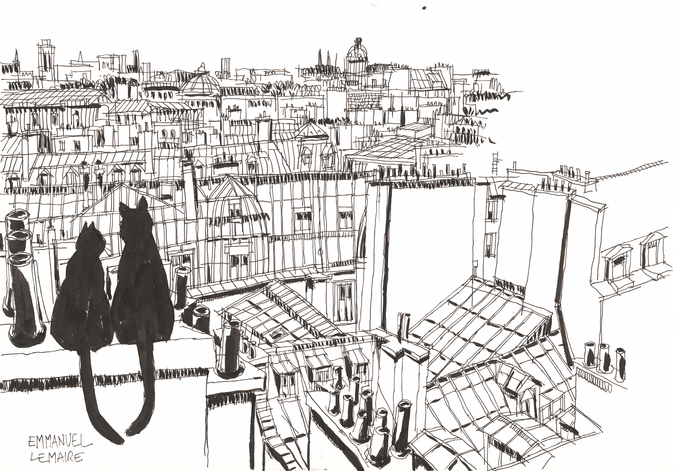 Emmanuel Lemaire - Deux chats perchés