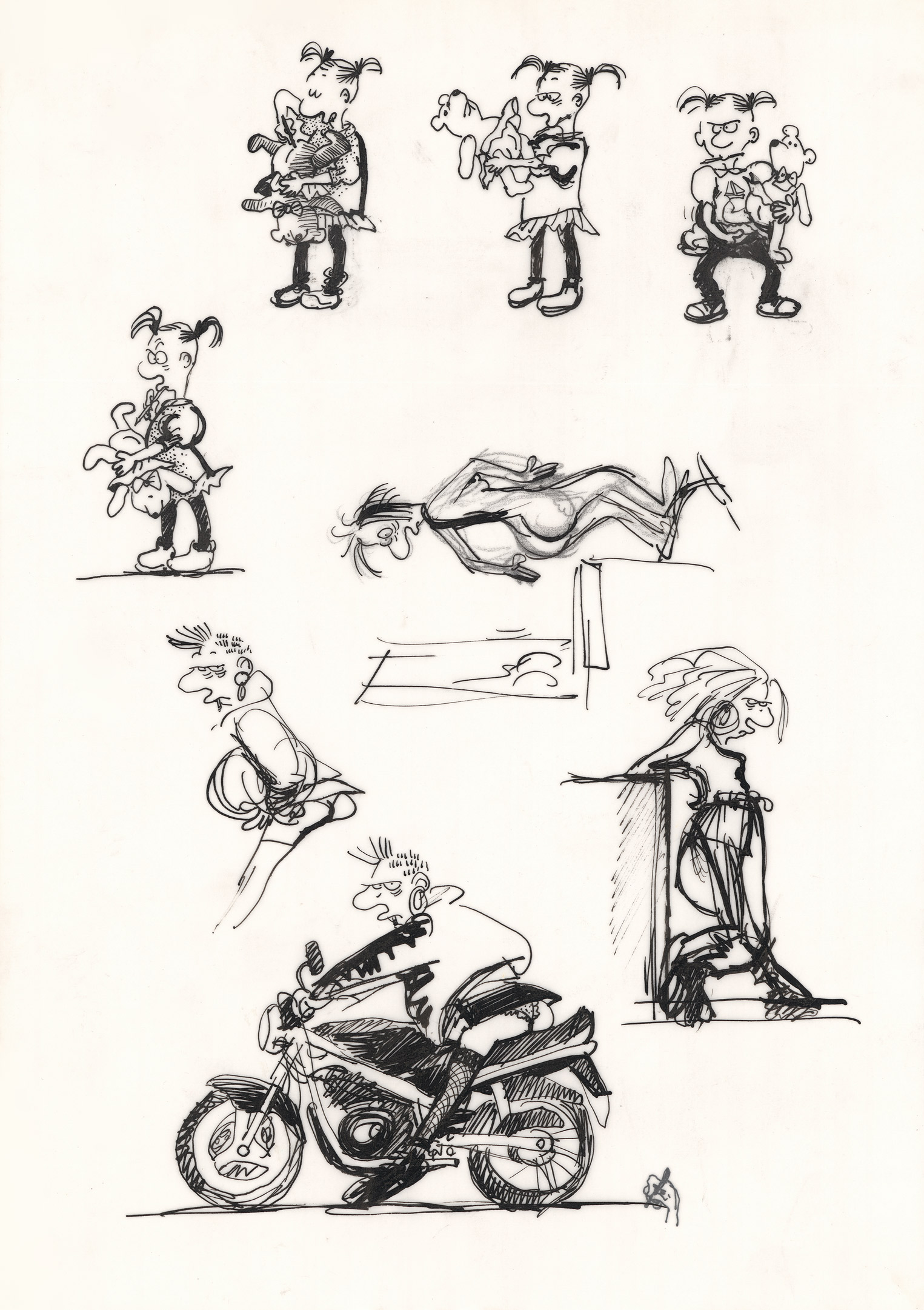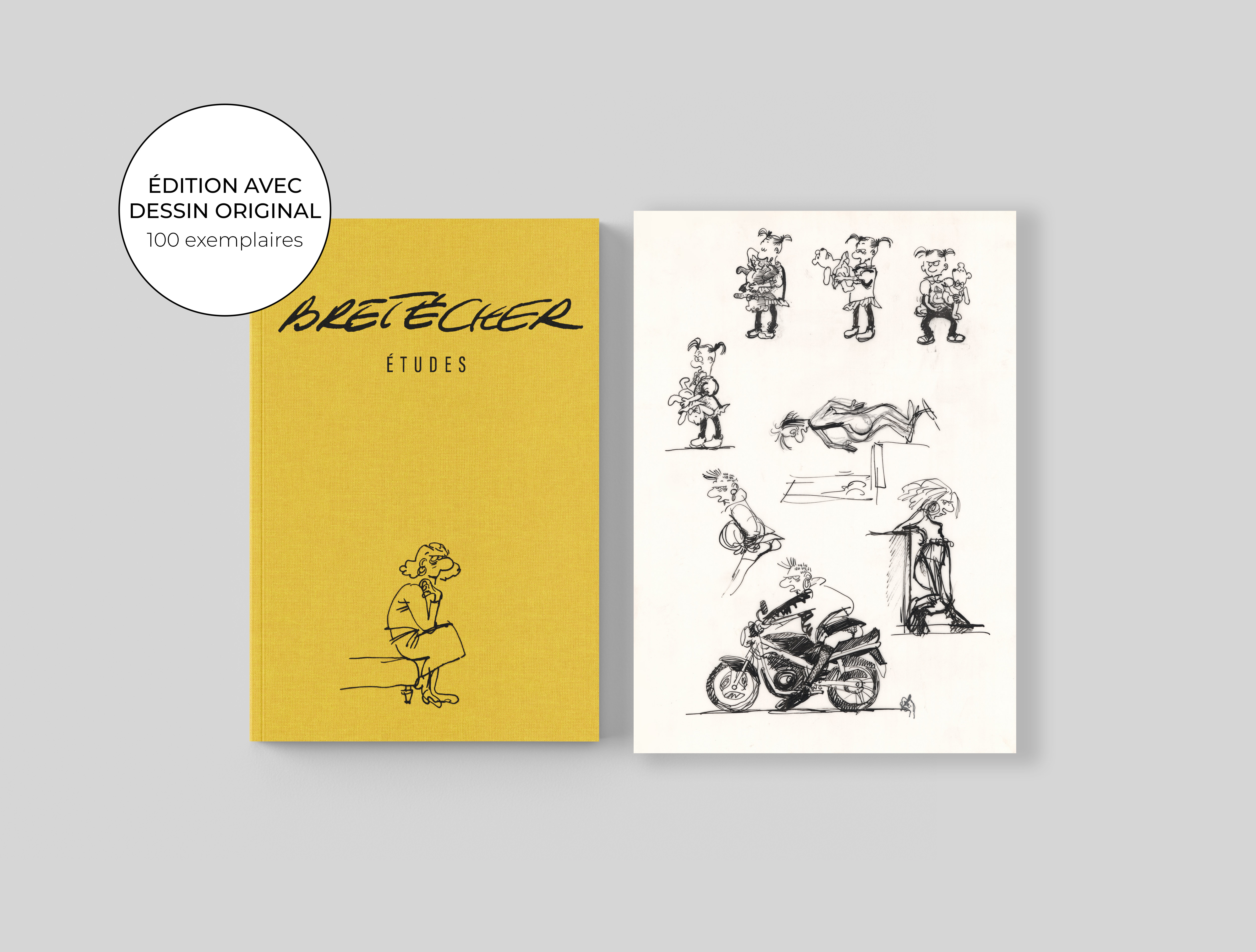 Claire Bretécher - Études, 56, 2025, Cet exemplaire numéroté 56/100 est accompagné d'un dessin original sur calque, utilisé comme étude préparatoire pour Tourista, 4ème de couverture.